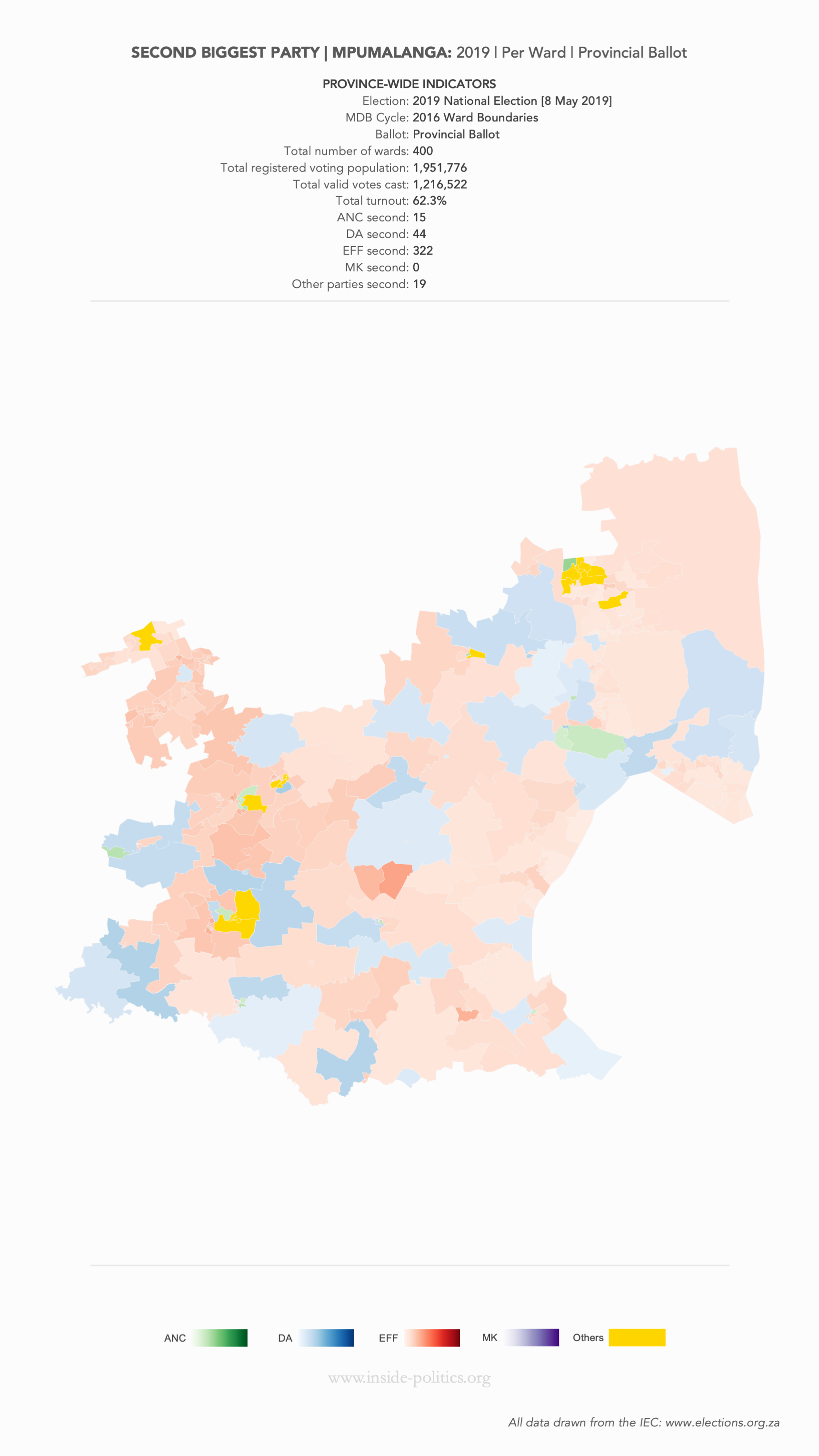 Heat Map: Mpumalanga | 2019 | Second Biggest Party by Ward