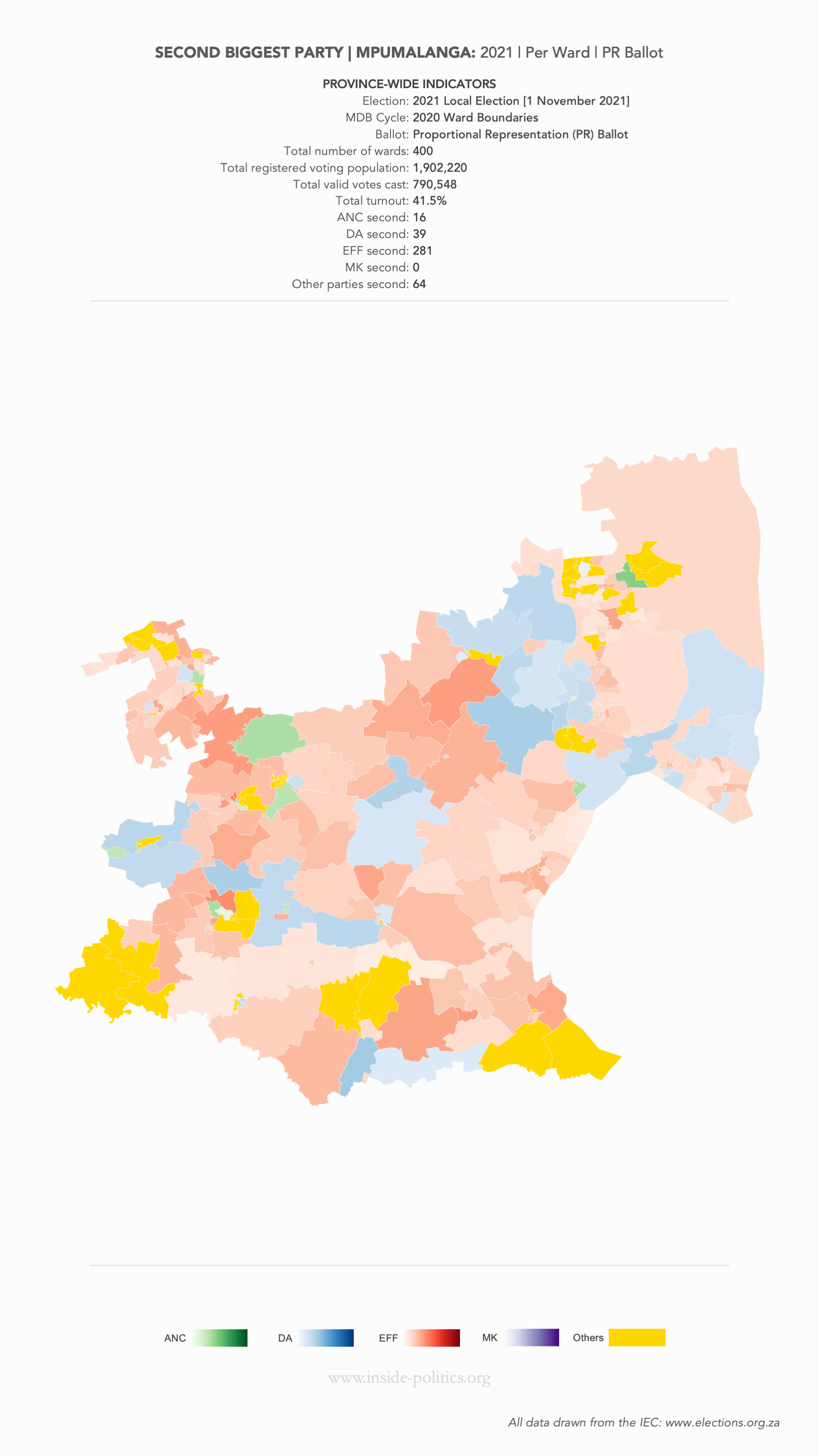 Heat Map: Mpumalanga | 2021 | Second Biggest Party by Ward