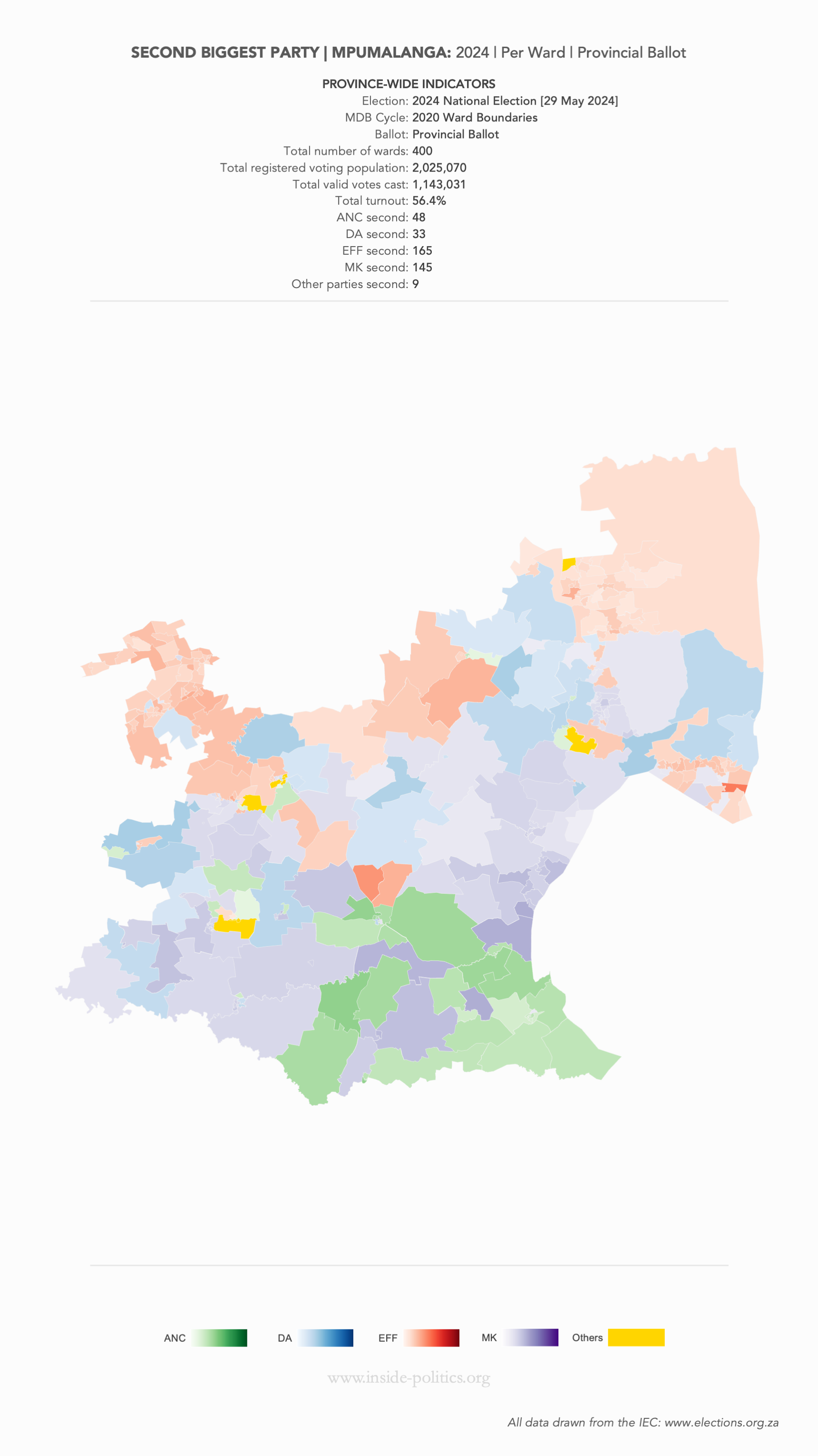 Heat Map: Mpumalanga | 2024 | Second Biggest Party by Ward