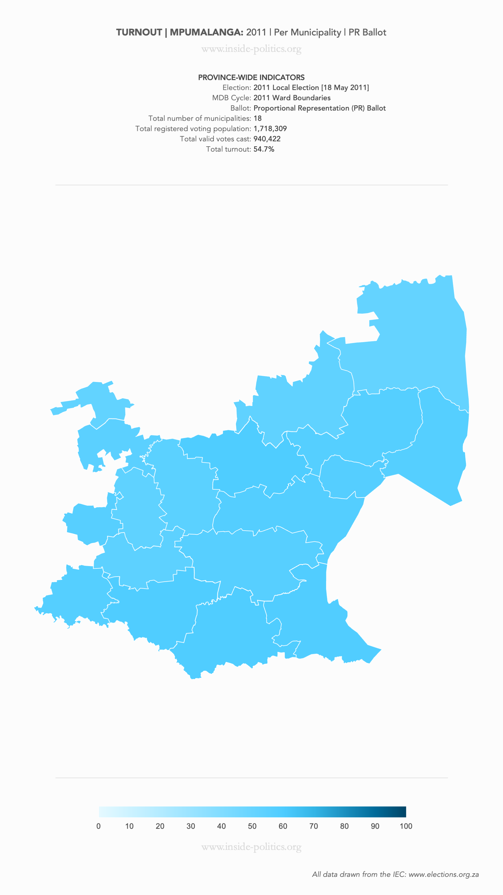 Heat Map: Mpumalanga | 2011 | Turnout by Municipality