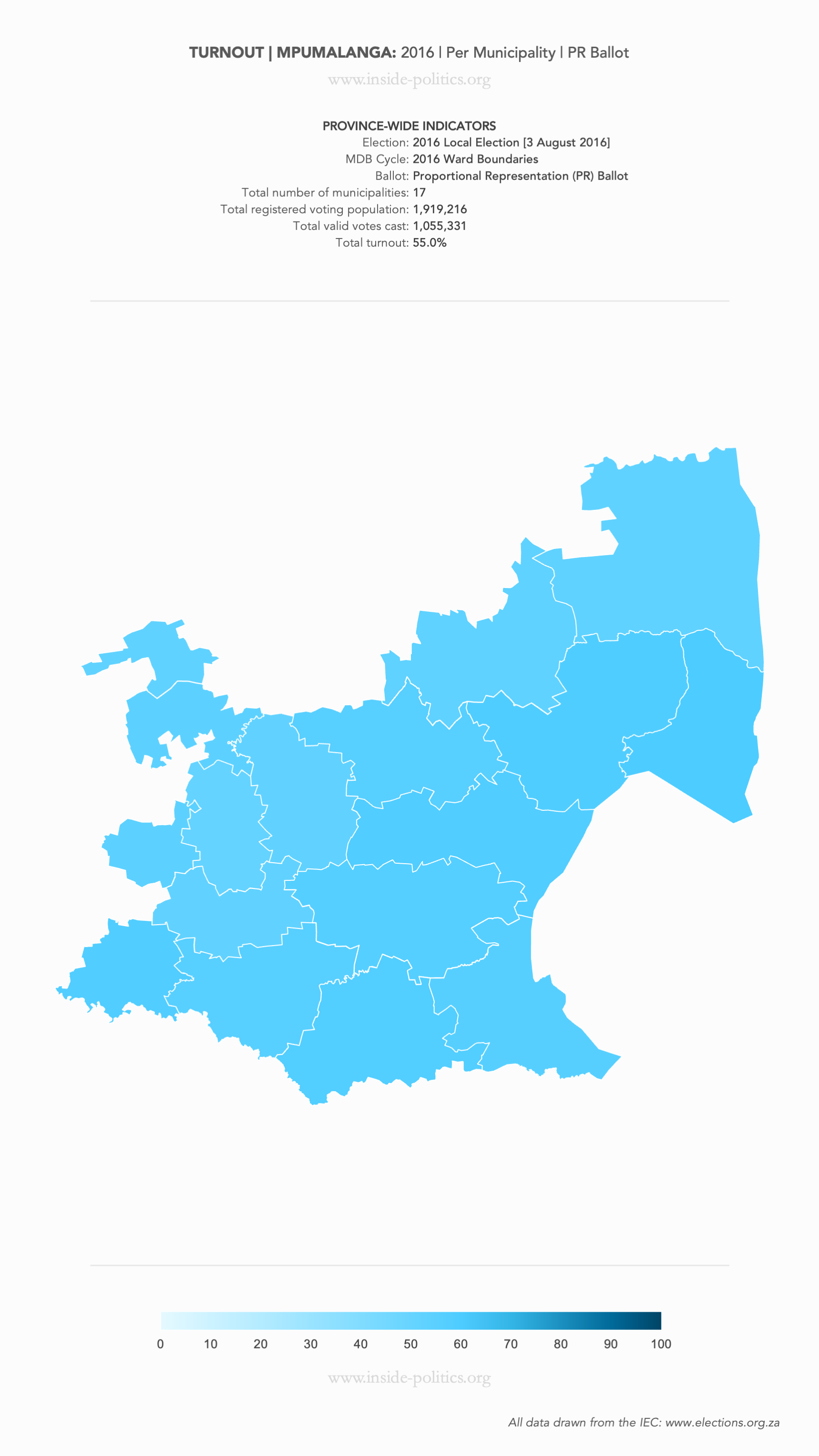 Heat Map: Mpumalanga | 2016 | Turnout by Municipality