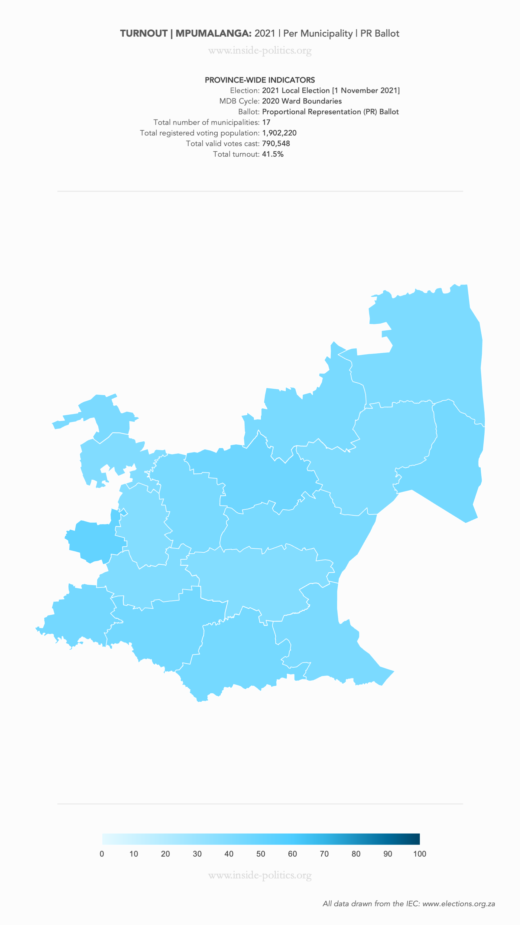 Heat Map: Mpumalanga | 2021 | Turnout by Municipality