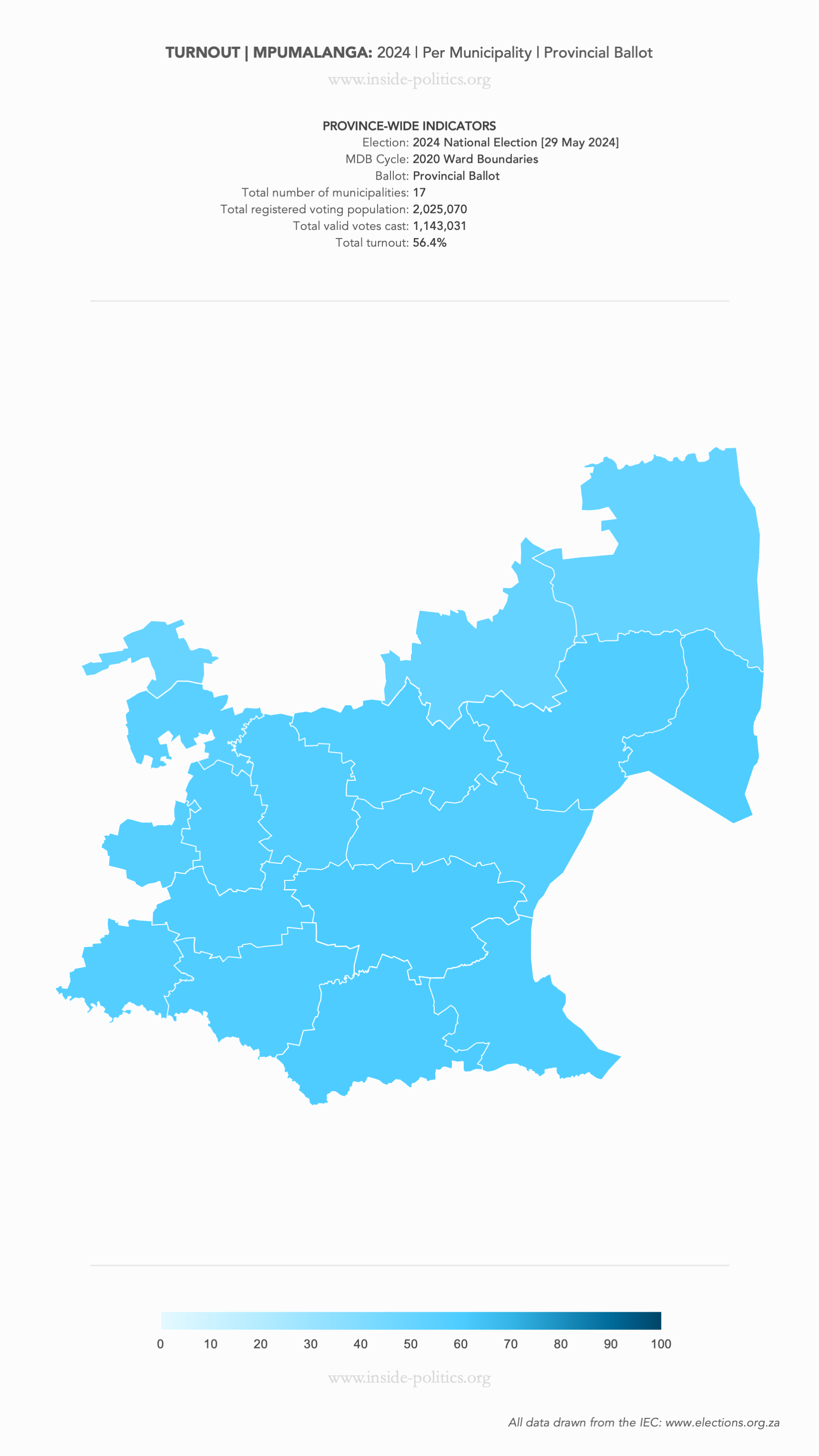 Heat Map: Mpumalanga | 2024 | Turnout by Municipality