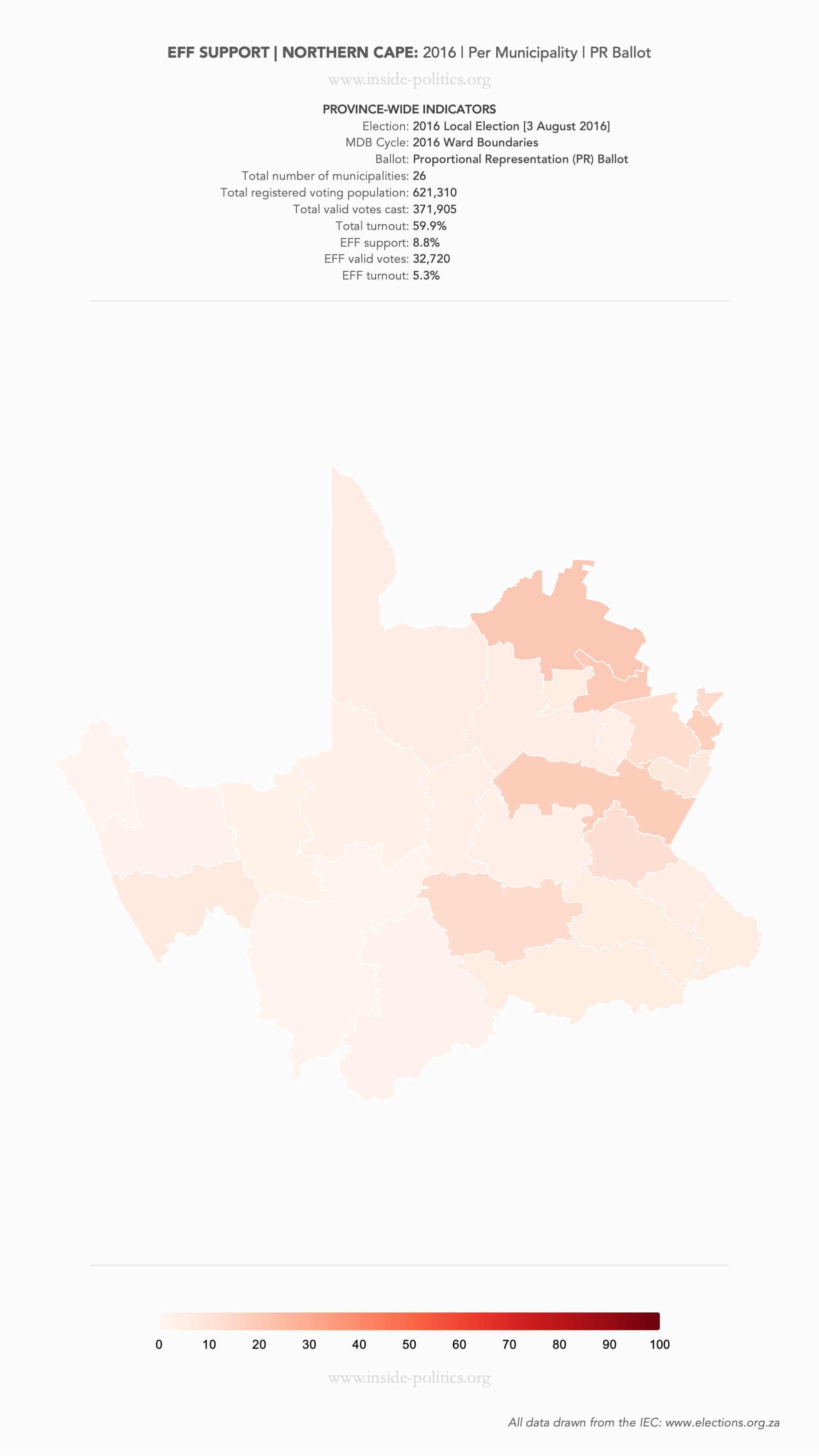 Heat Map: Northern Cape | 2016 | EFF Support by Municipality