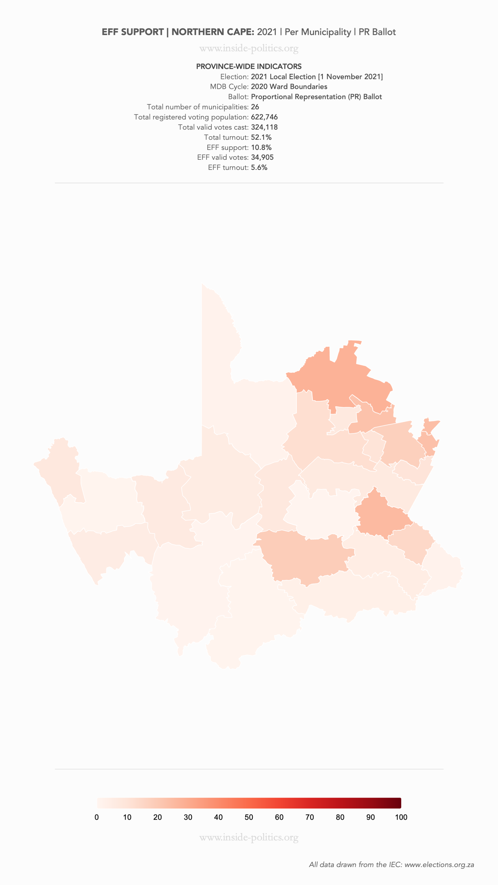 Heat Map: Northern Cape | 2021 | EFF Support by Municipality