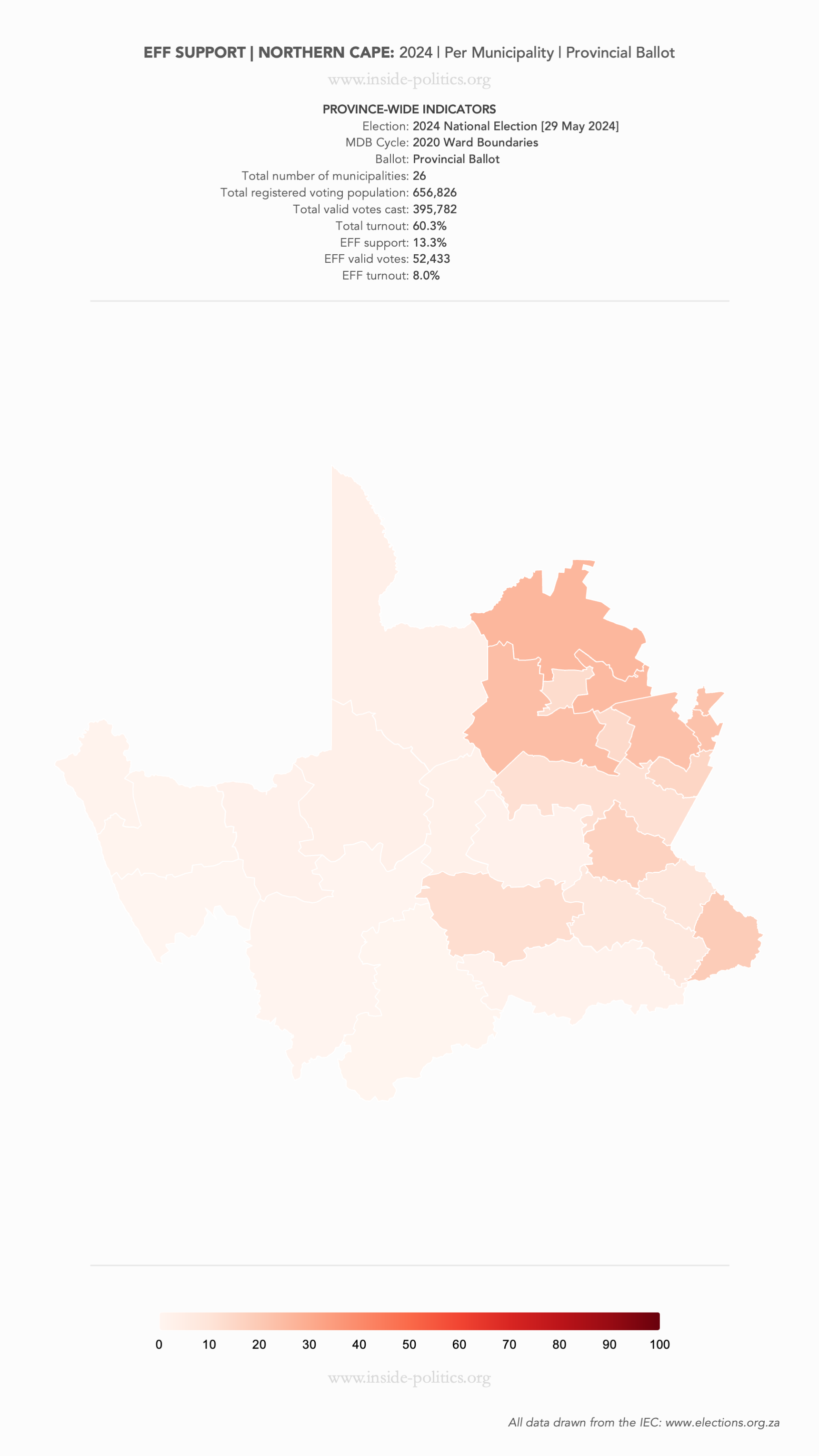 Heat Map: Northern Cape | 2024 | EFF Support by Municipality