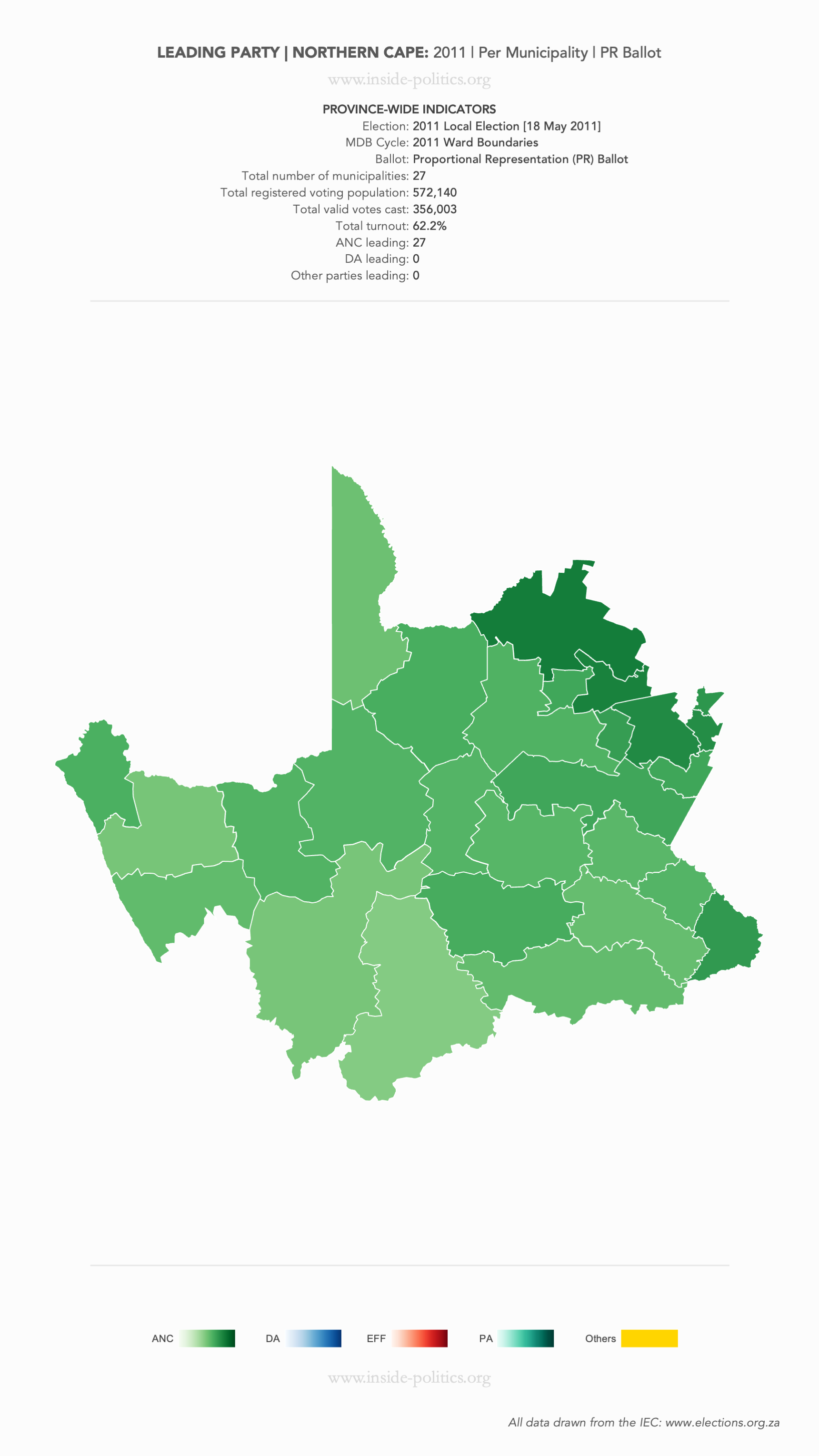 Heat Map: Northern Cape | 2011 | Leading Party Support by Municipality