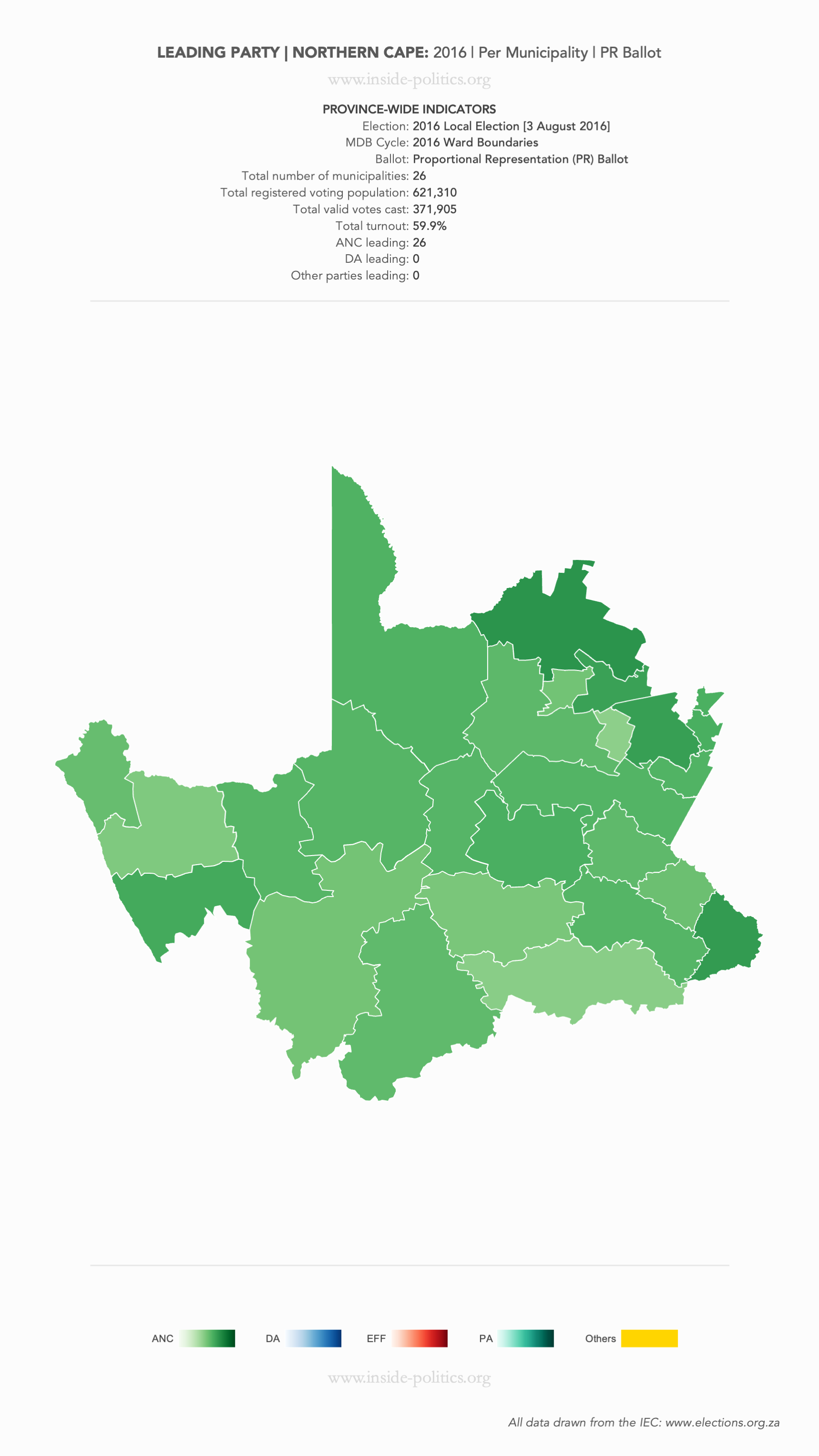 Heat Map: Northern Cape | 2016 | Leading Party Support by Municipality