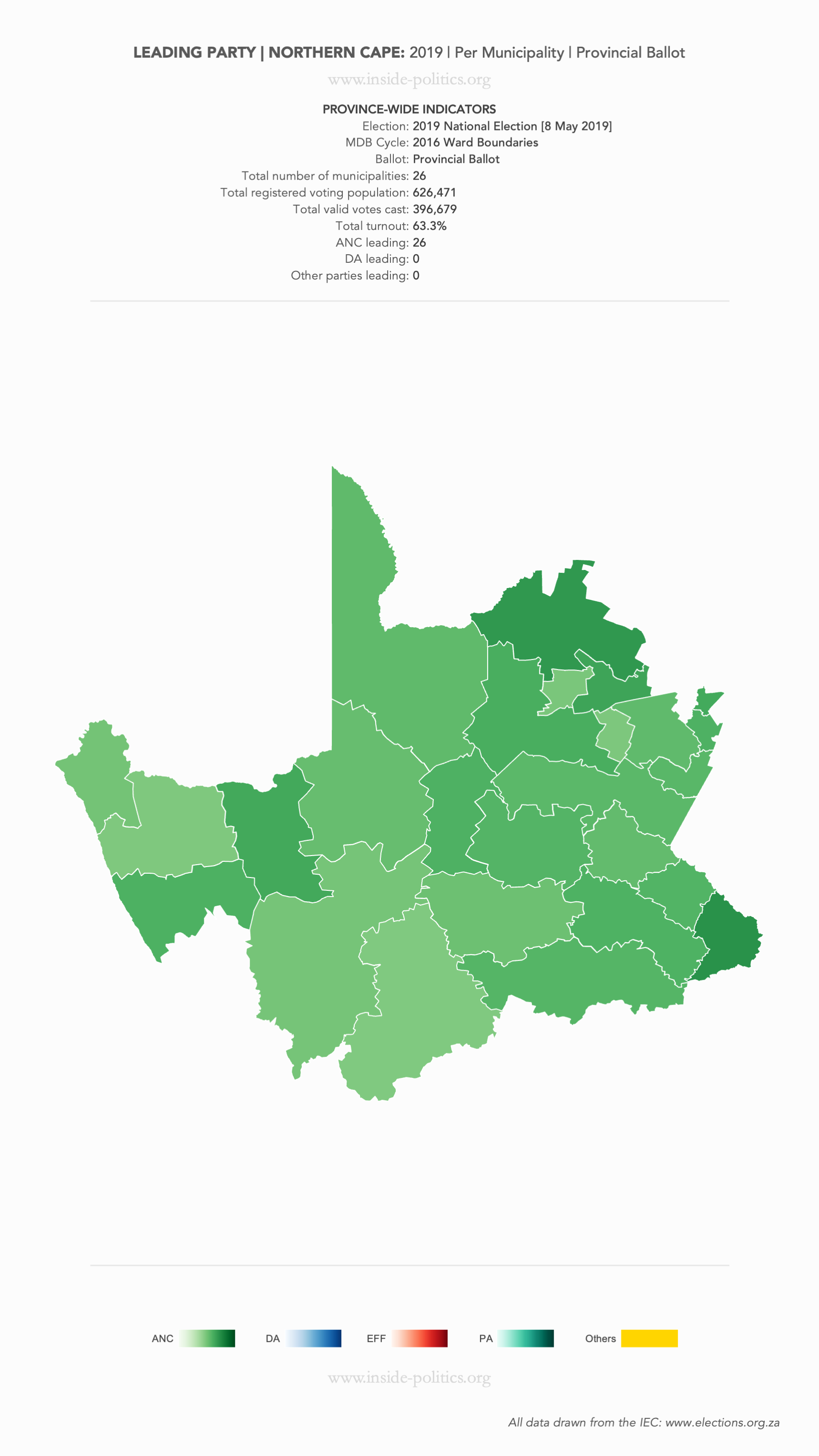 Heat Map: Northern Cape | 2019 | Leading Party Support by Municipality