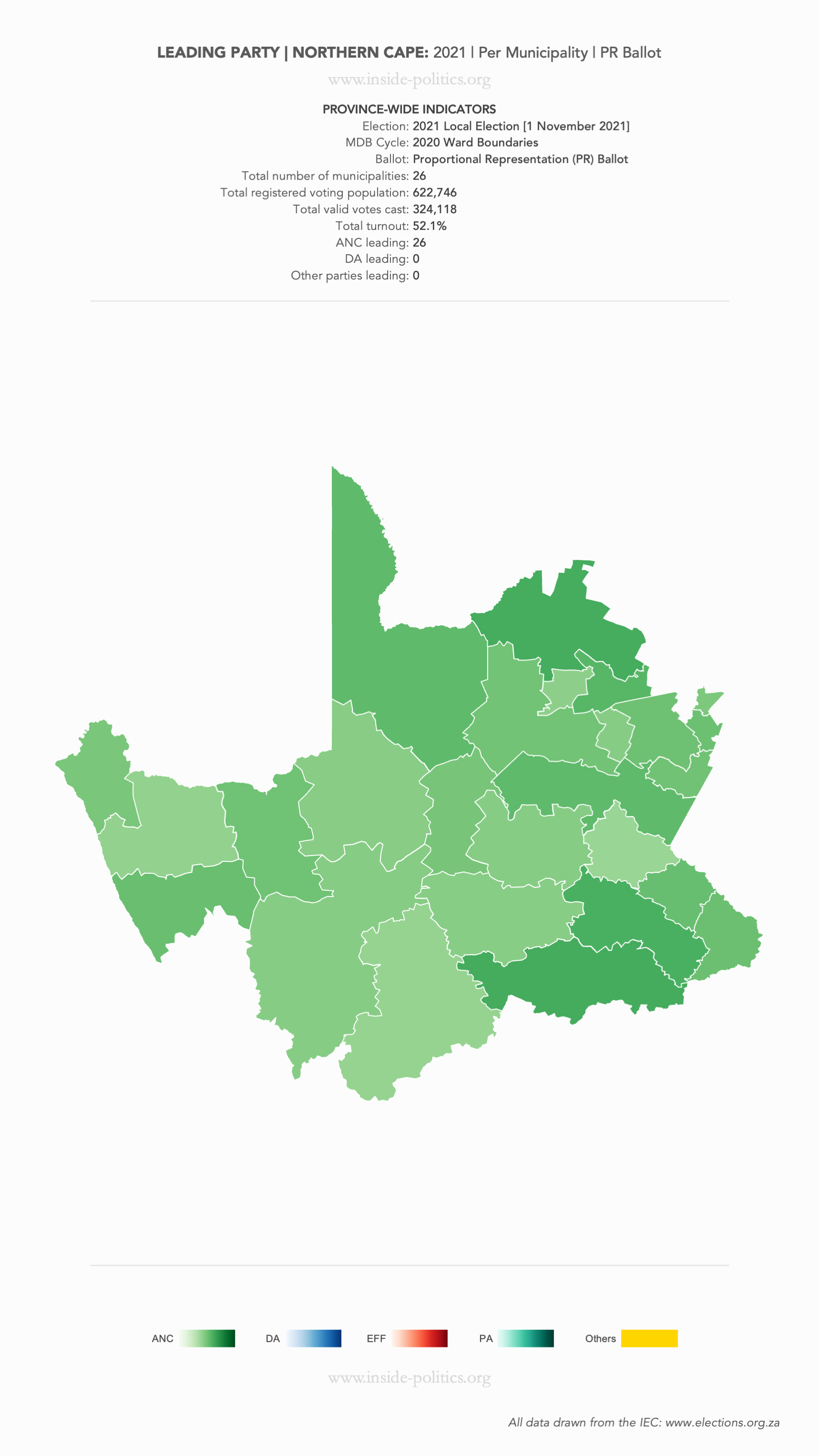 Heat Map: Northern Cape | 2021 | Leading Party Support by Municipality