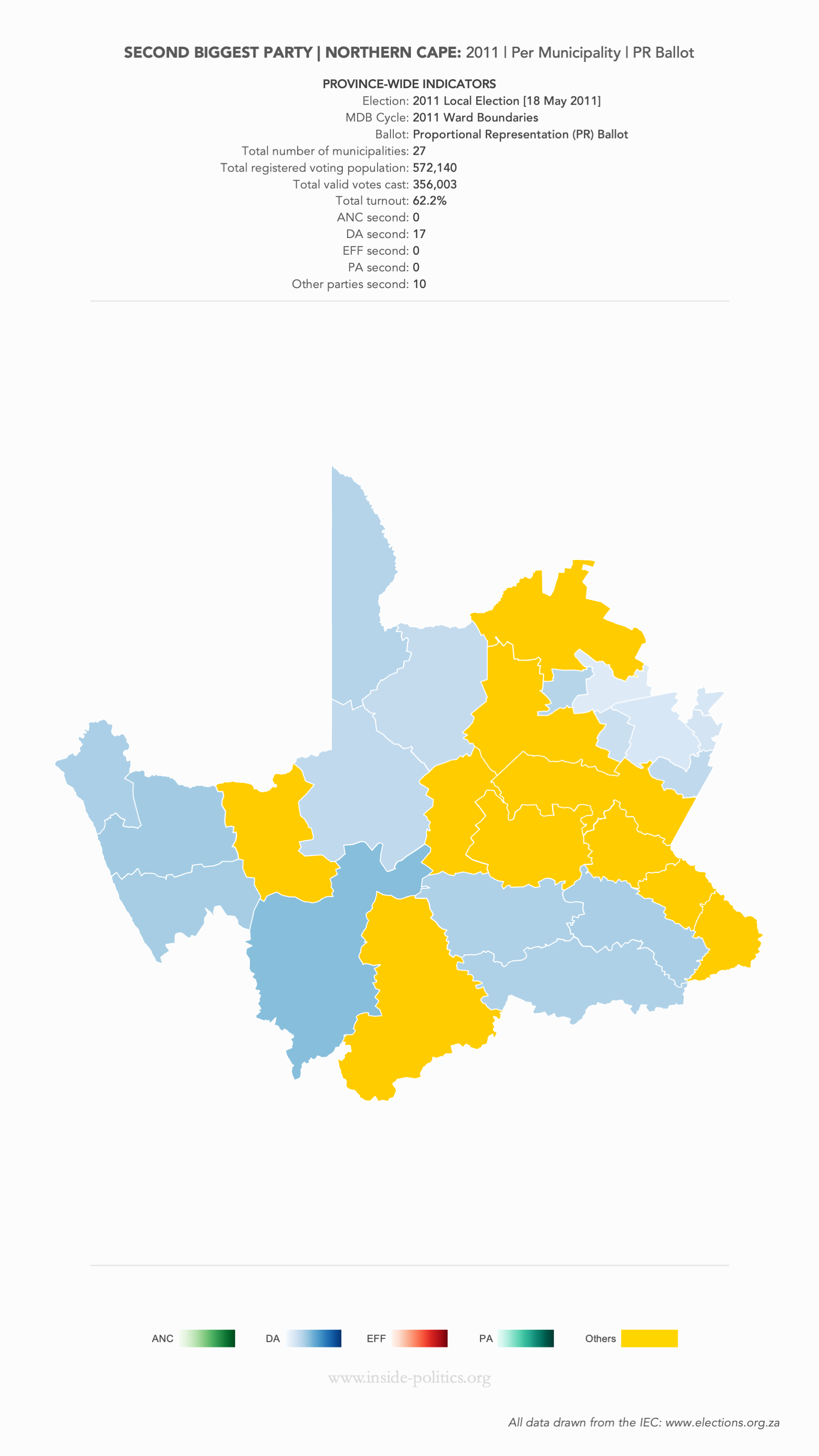 Heat Map: Northern Cape | 2011 | Second Biggest Party by Municipality