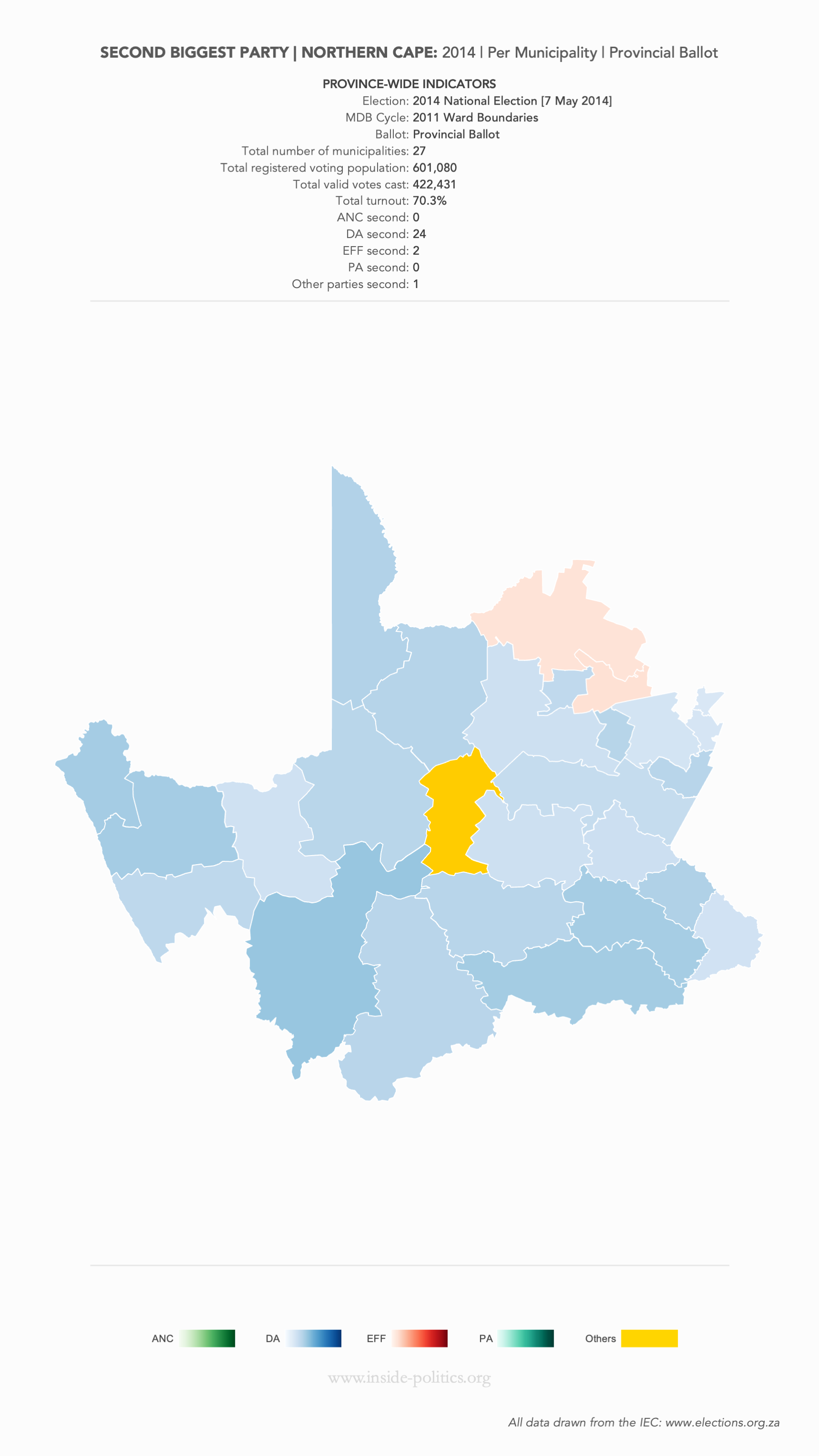 Heat Map: Northern Cape | 2014 | Second Biggest Party by Municipality