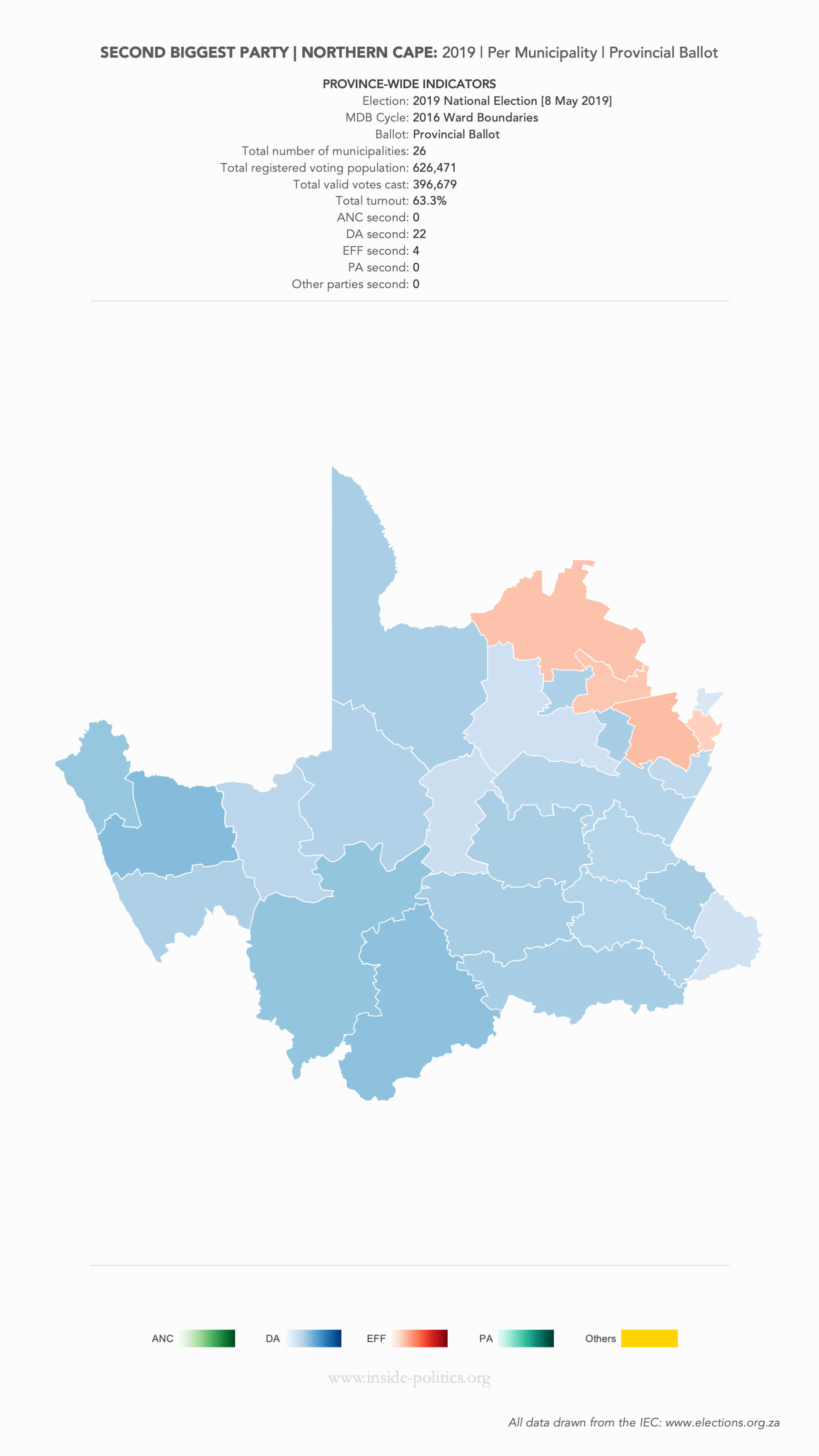 Heat Map: Northern Cape | 2019 | Second Biggest Party by Municipality