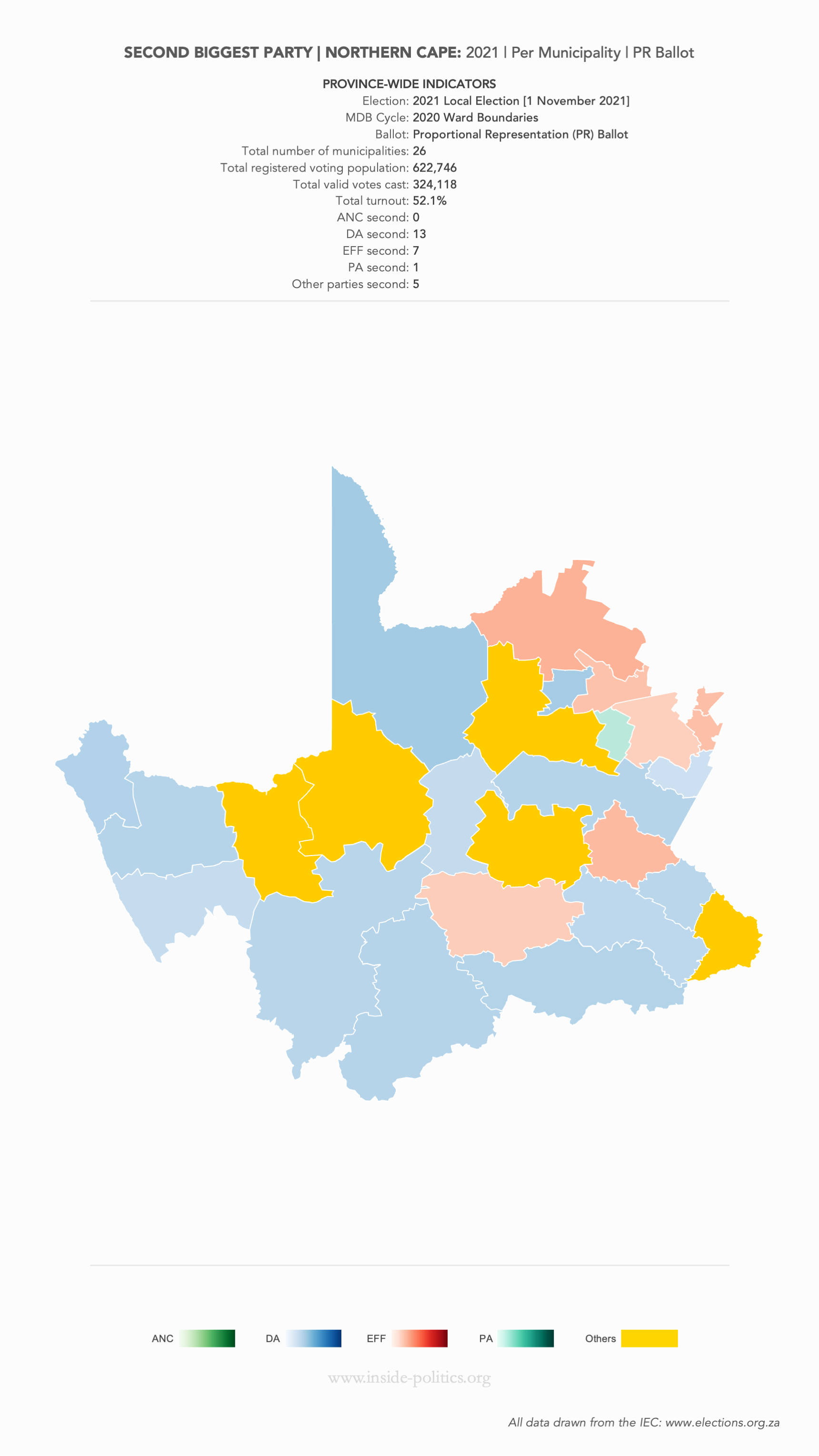 Heat Map: Northern Cape | 2021 | Second Biggest Party by Municipality
