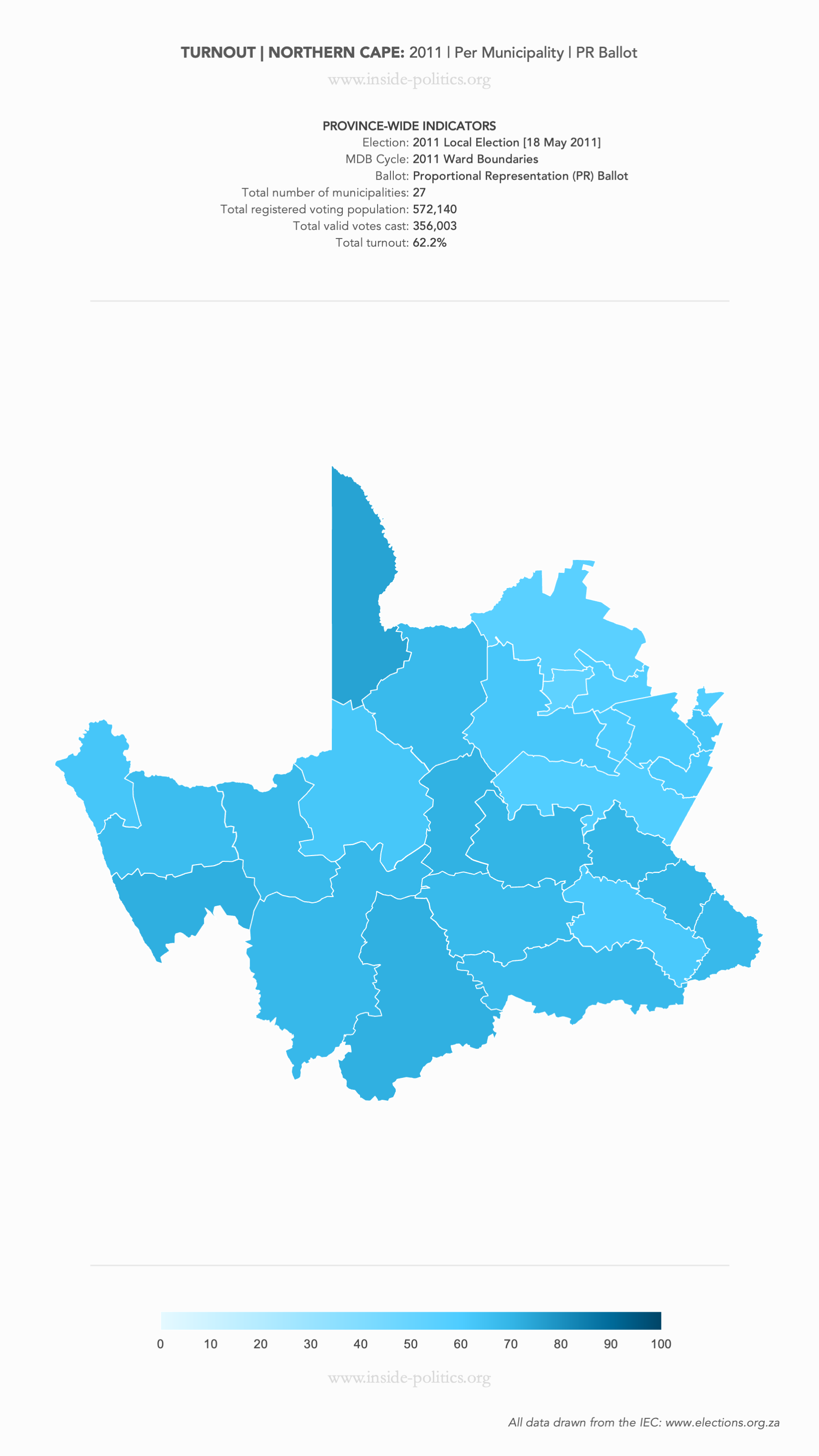 Heat Map: Northern Cape | 2011 | Turnout by Municipality