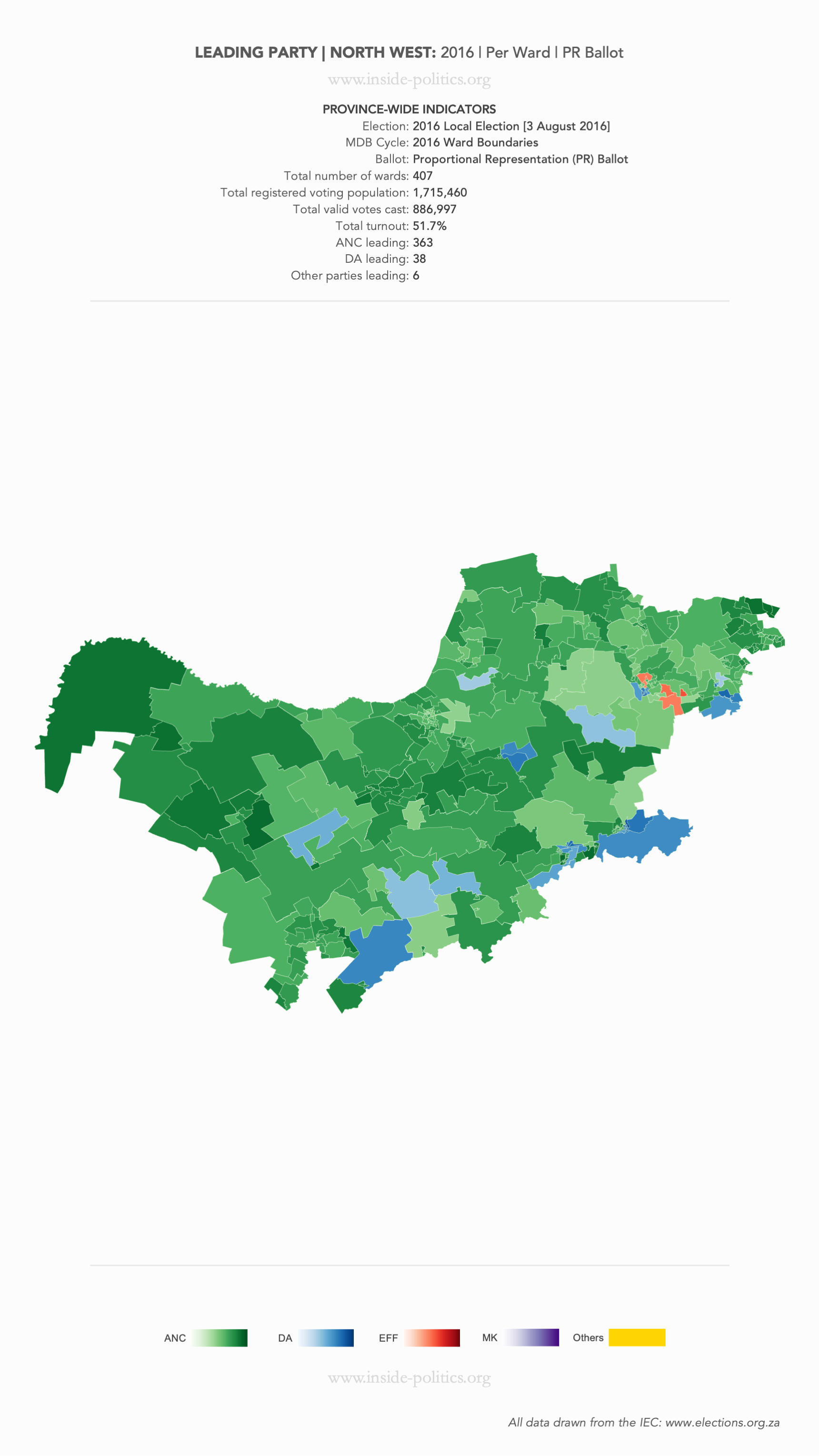 Heat Map: North West | 2016 | Leading Party Support by Ward