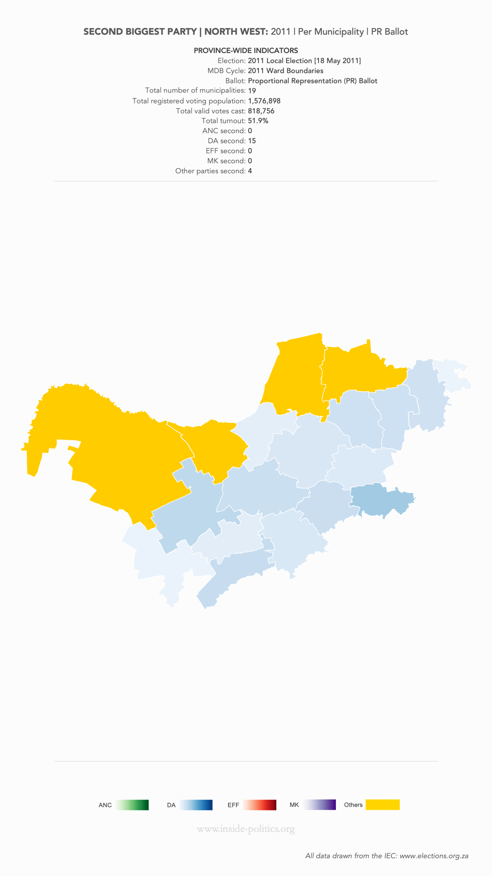 Heat Map: North West | 2011 | Second Biggest Party by Municipality