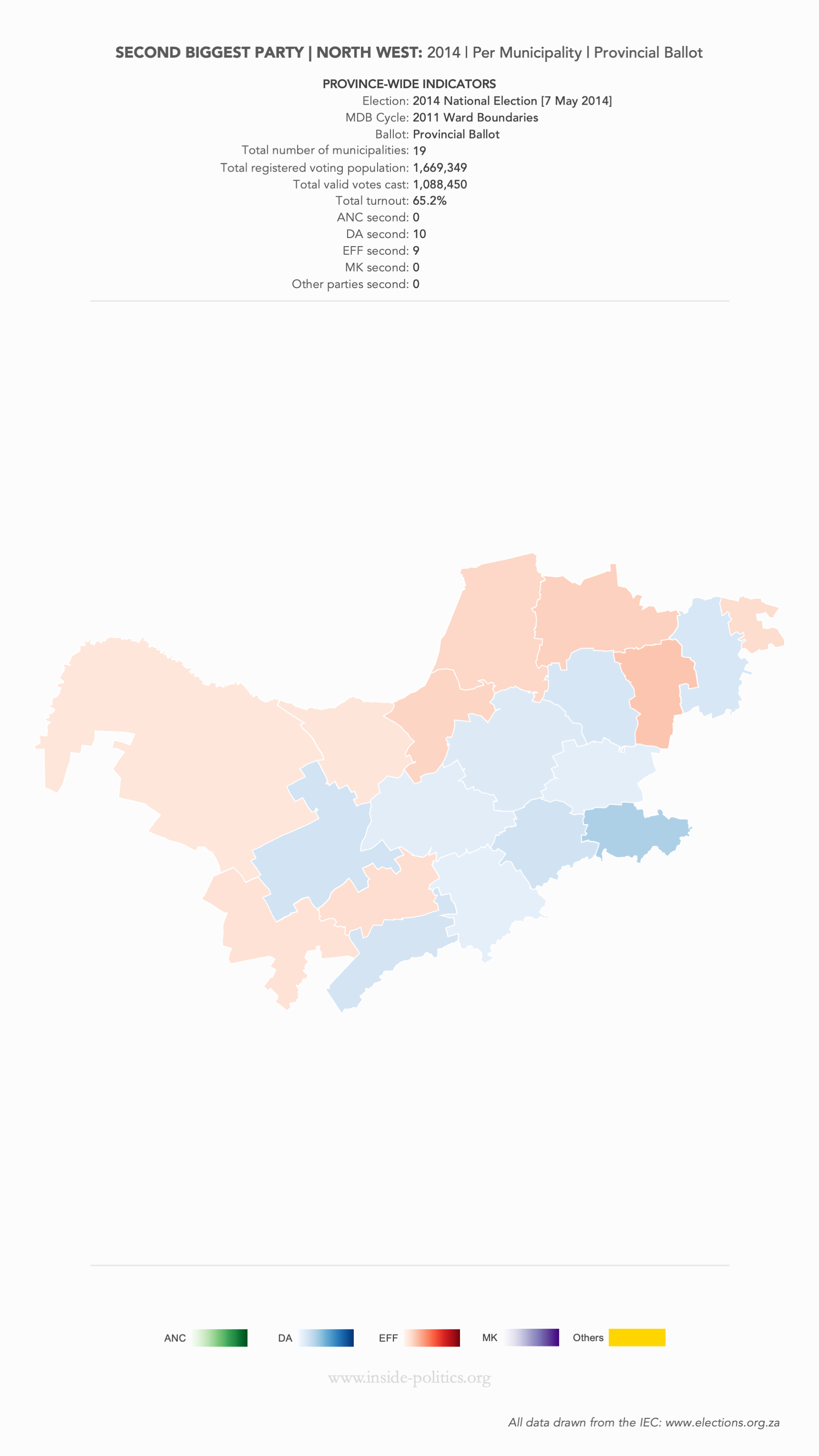 Heat Map: North West | 2014 | Second Biggest Party by Municipality