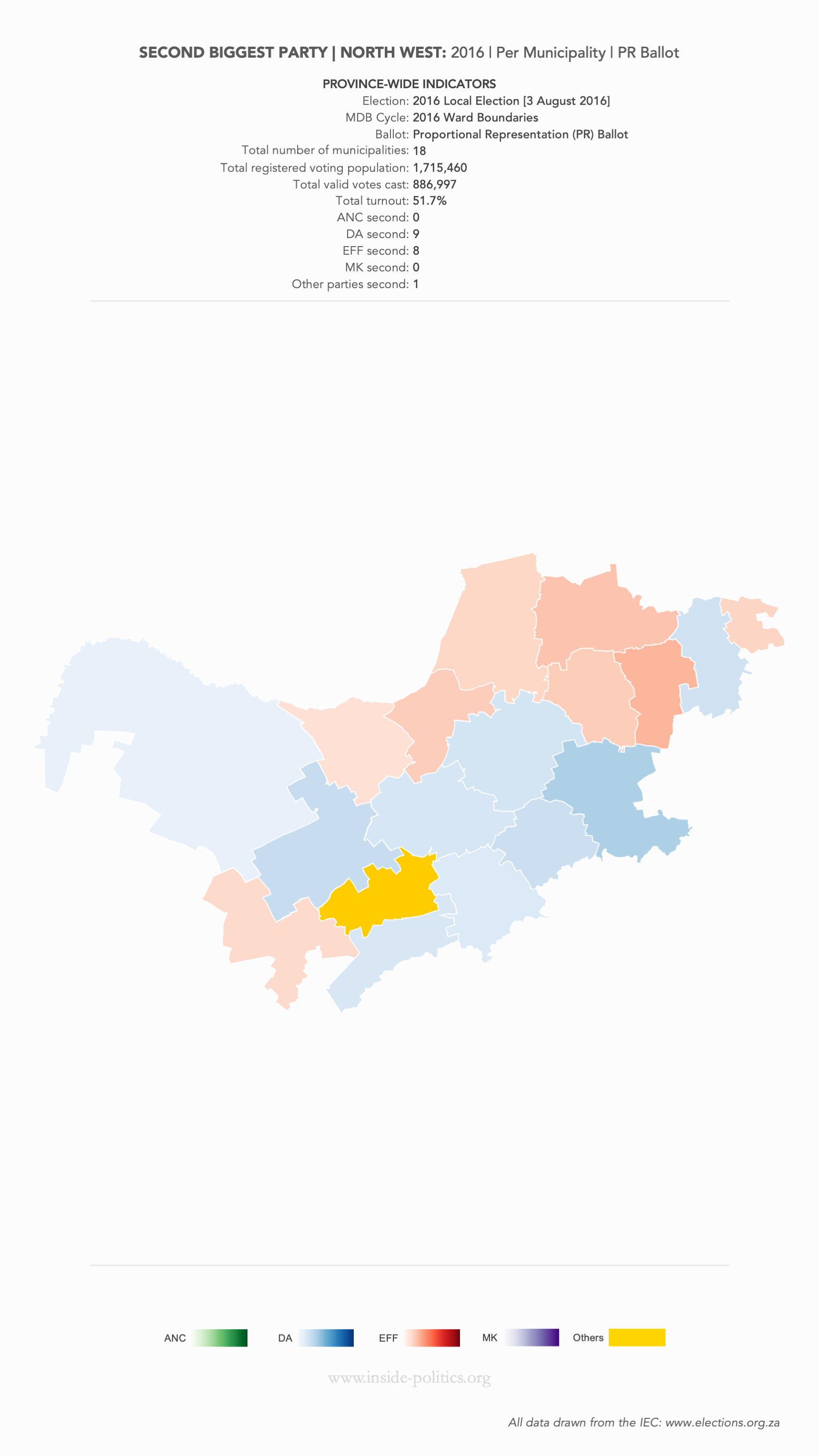 Heat Map: North West | 2016 | Second Biggest Party by Municipality