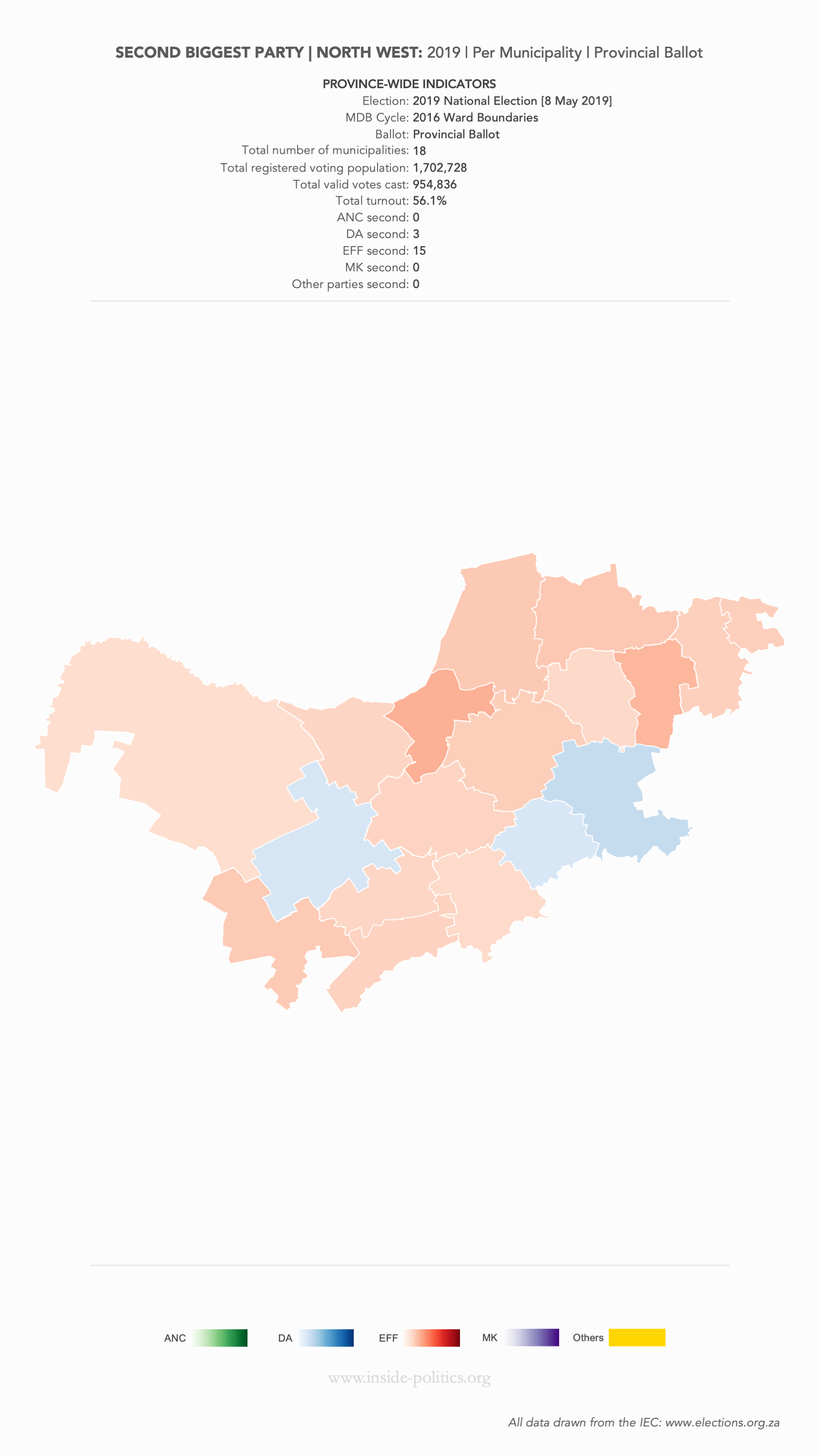 Heat Map: North West | 2019 | Second Biggest Party by Municipality