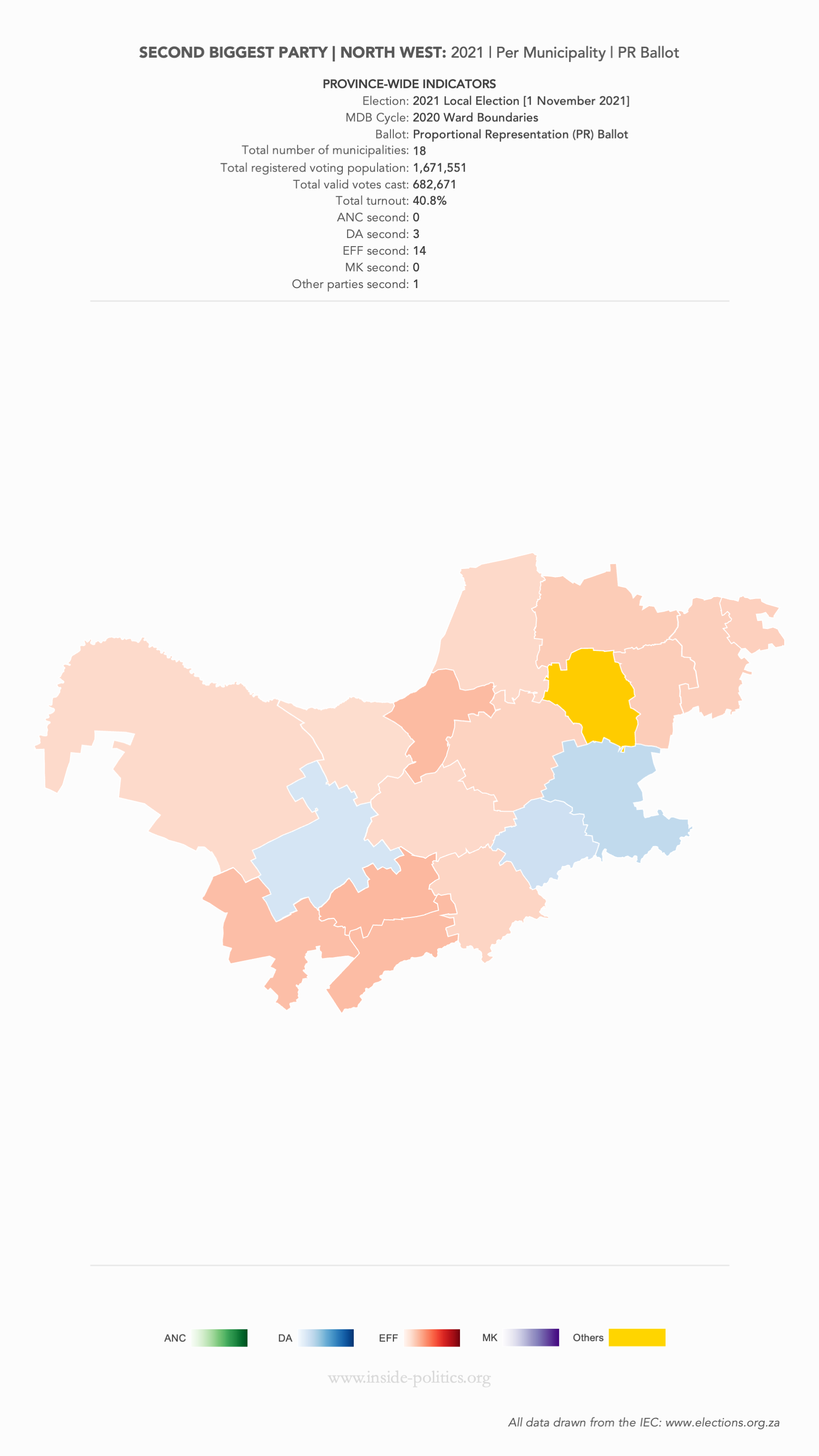 Heat Map: North West | 2021 | Second Biggest Party by Municipality