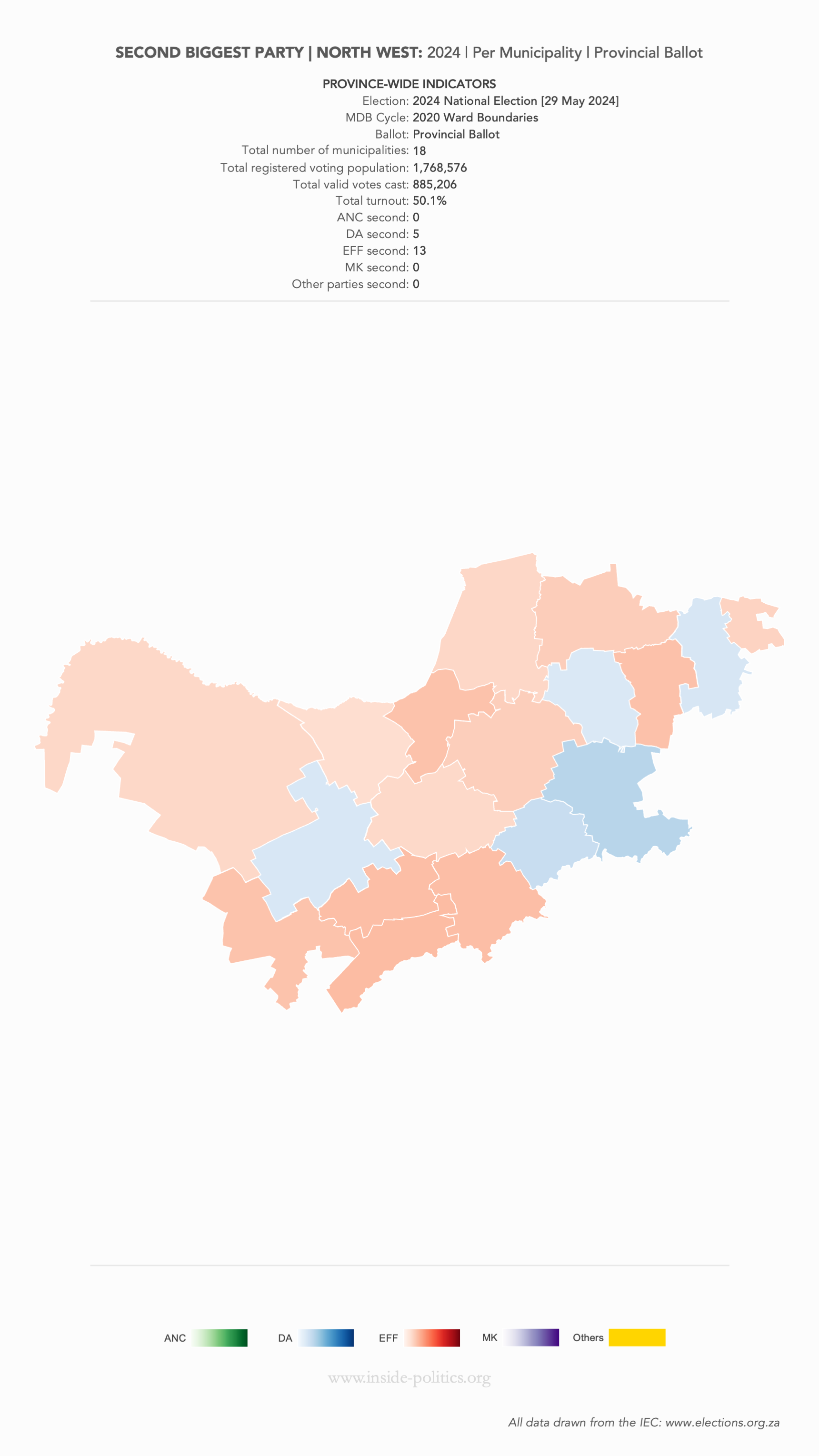 Heat Map: North West | 2024 | Second Biggest Party by Municipality