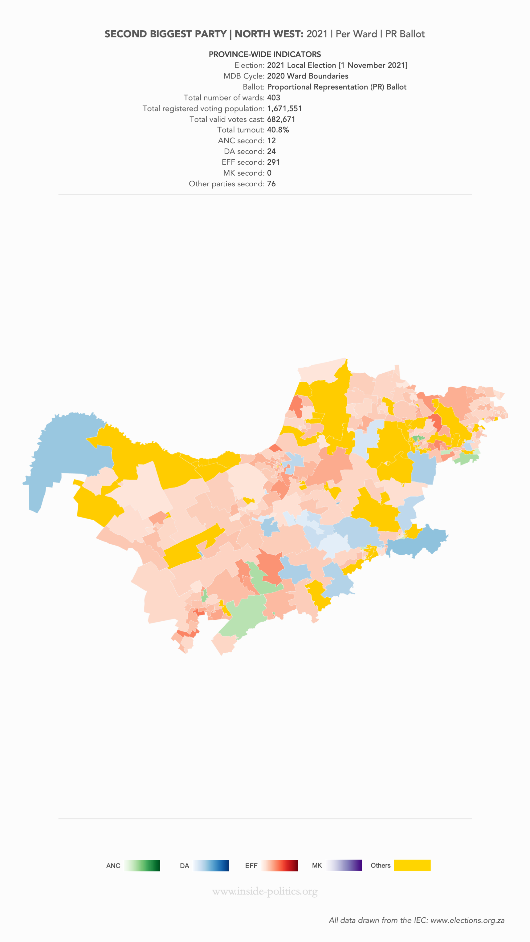 Heat Map: North West | 2021 | Second Biggest Party by Ward