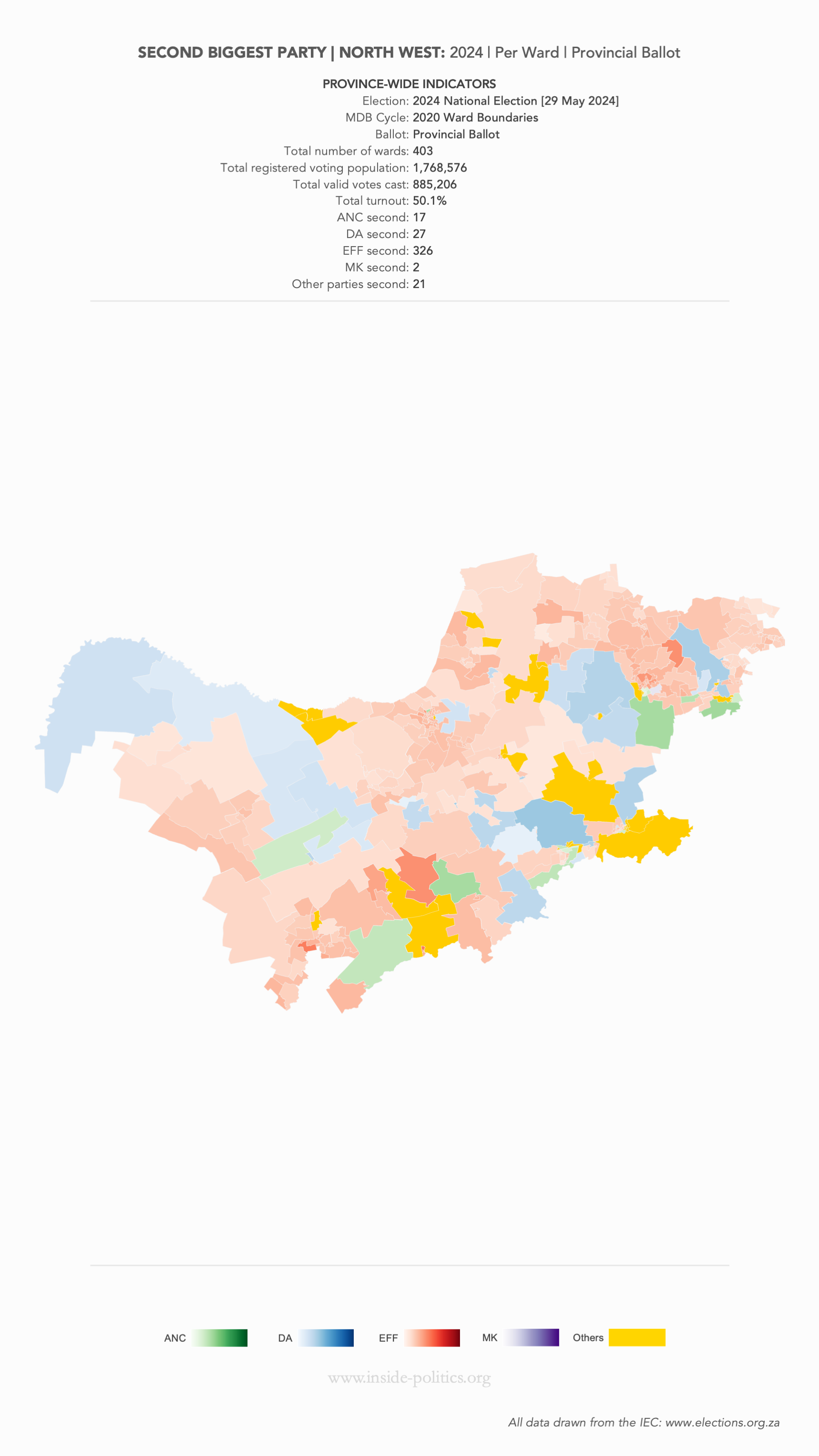 Heat Map: North West | 2024 | Second Biggest Party by Ward