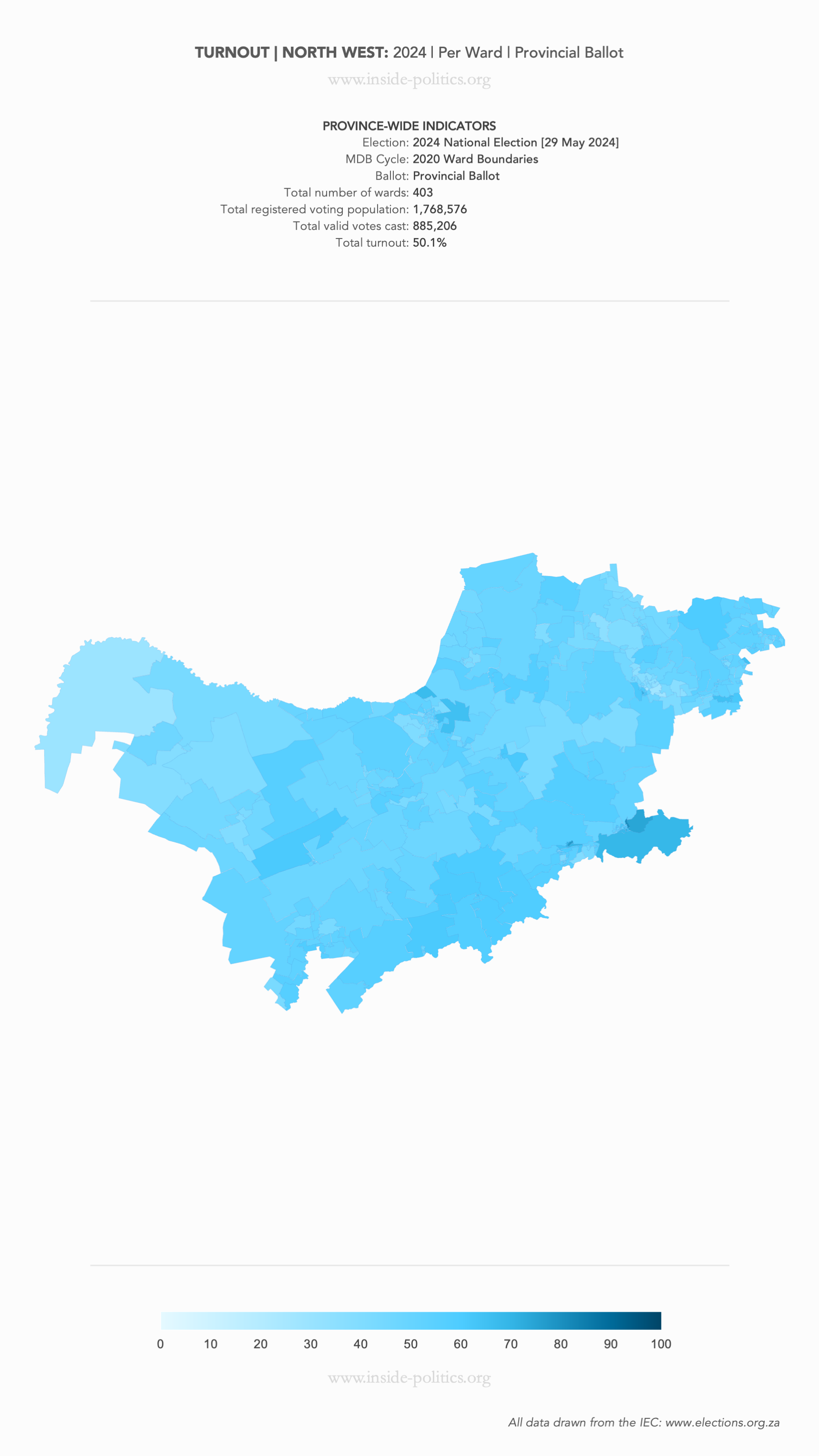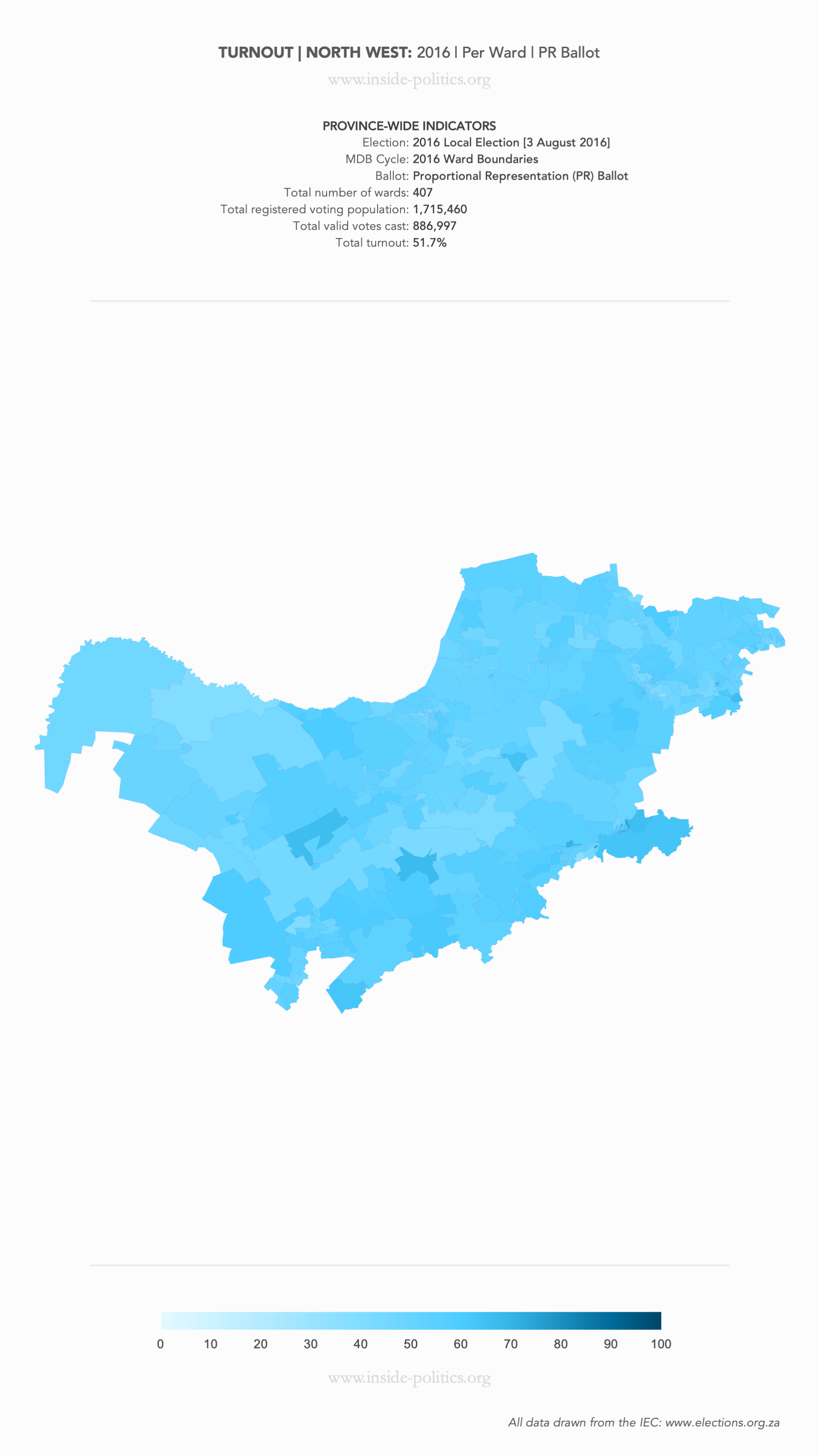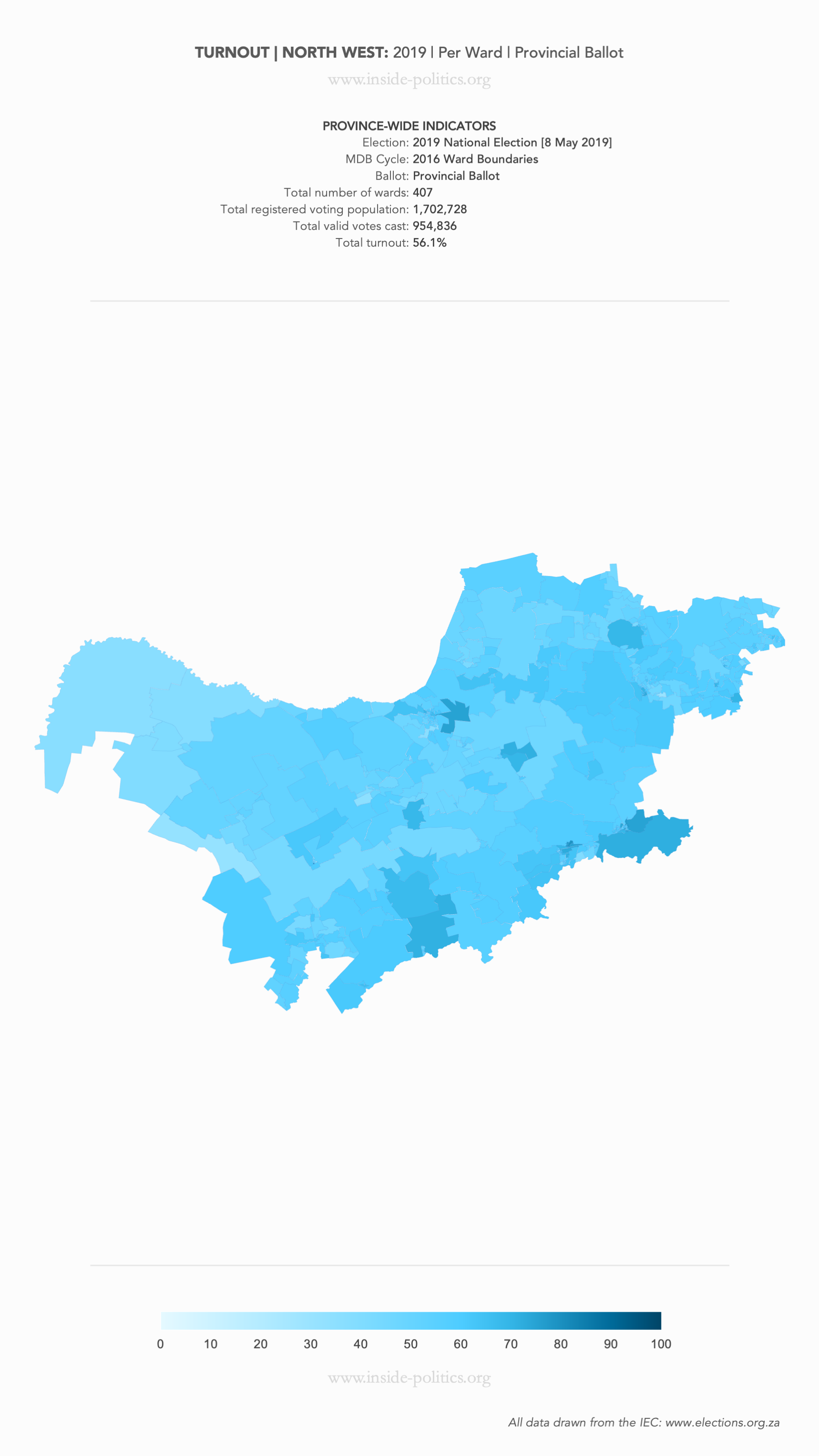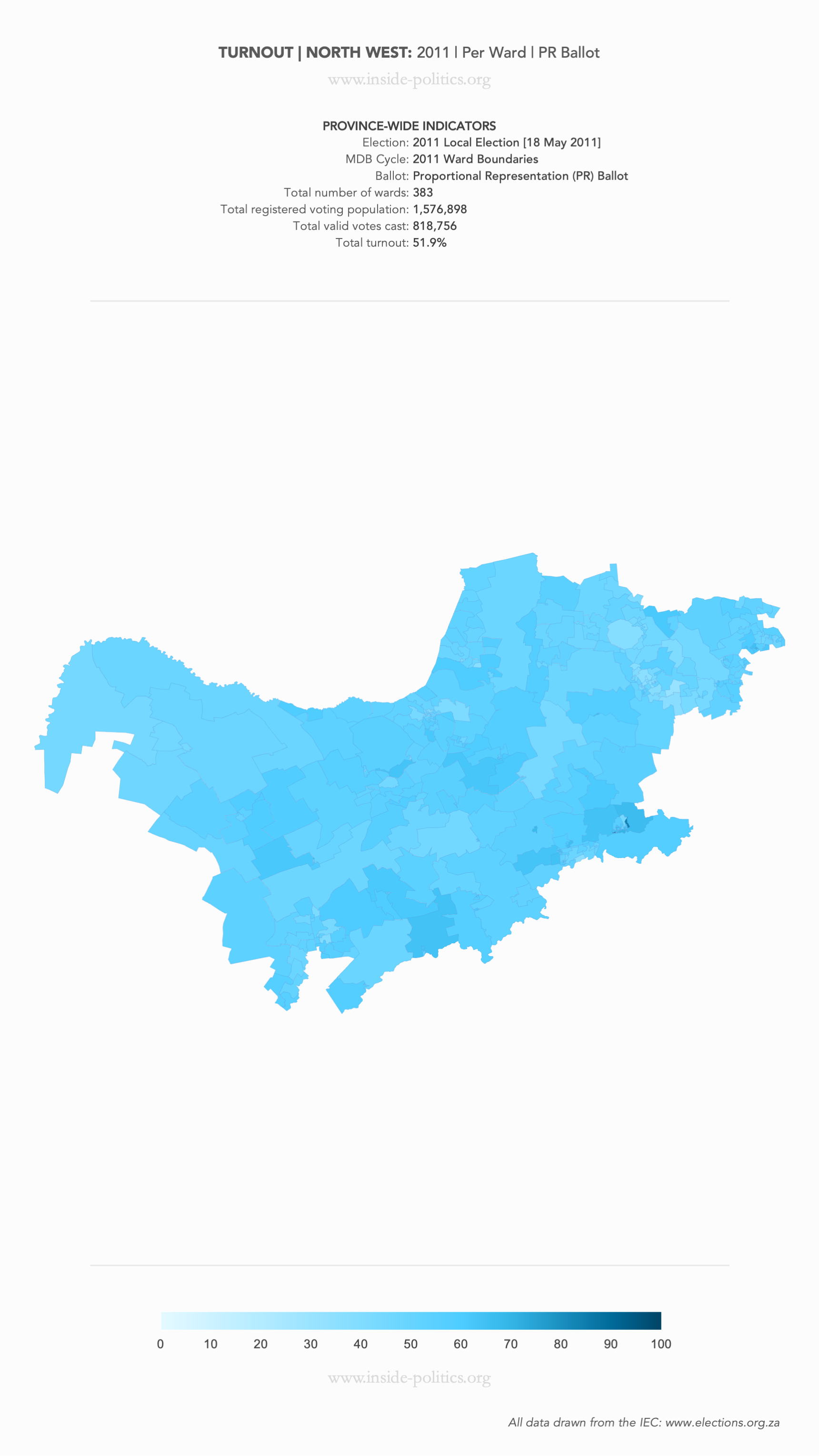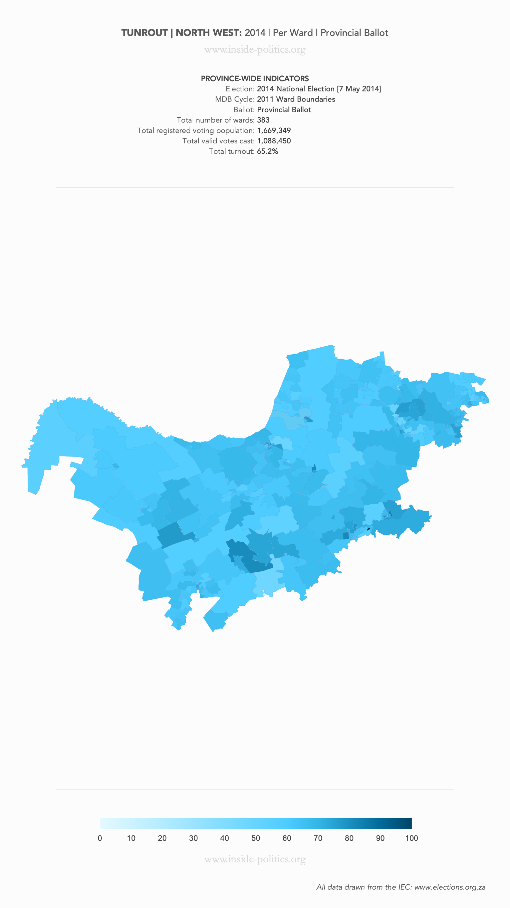These are a set of what is commonly referred to as “Heat Maps”. The more technical name is Choropleth Maps. They are designed to use a colour scale, to demonstrate the intensity of one particular indicator – in this case: turnout per ward: the darker the colour in a ward, the higher the turnout.