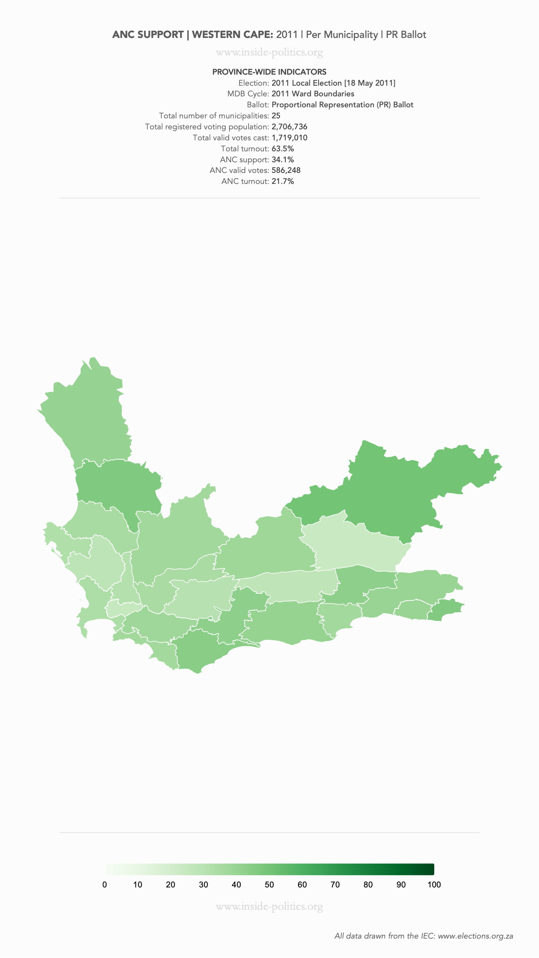 Heat Map: Western Cape | 2011 | ANC Support by Municipality