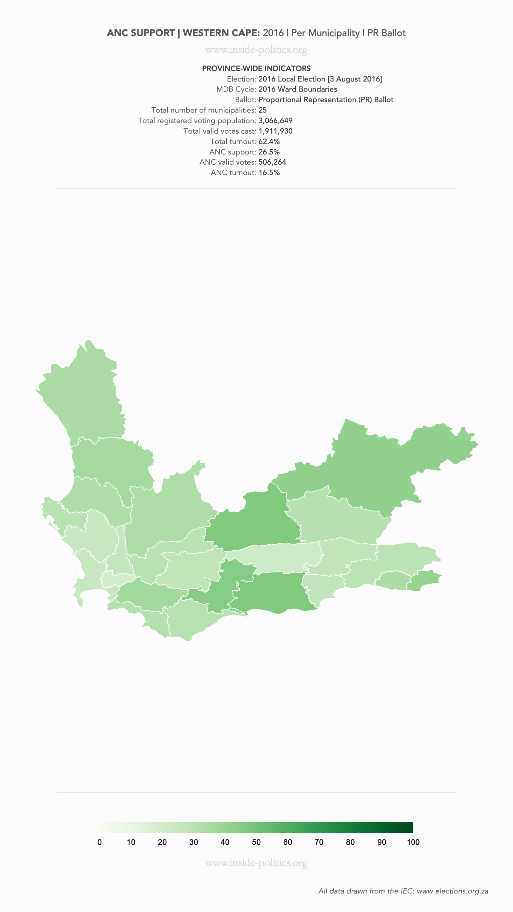 Heat Map: Western Cape | 2016 | ANC Support by Municipality