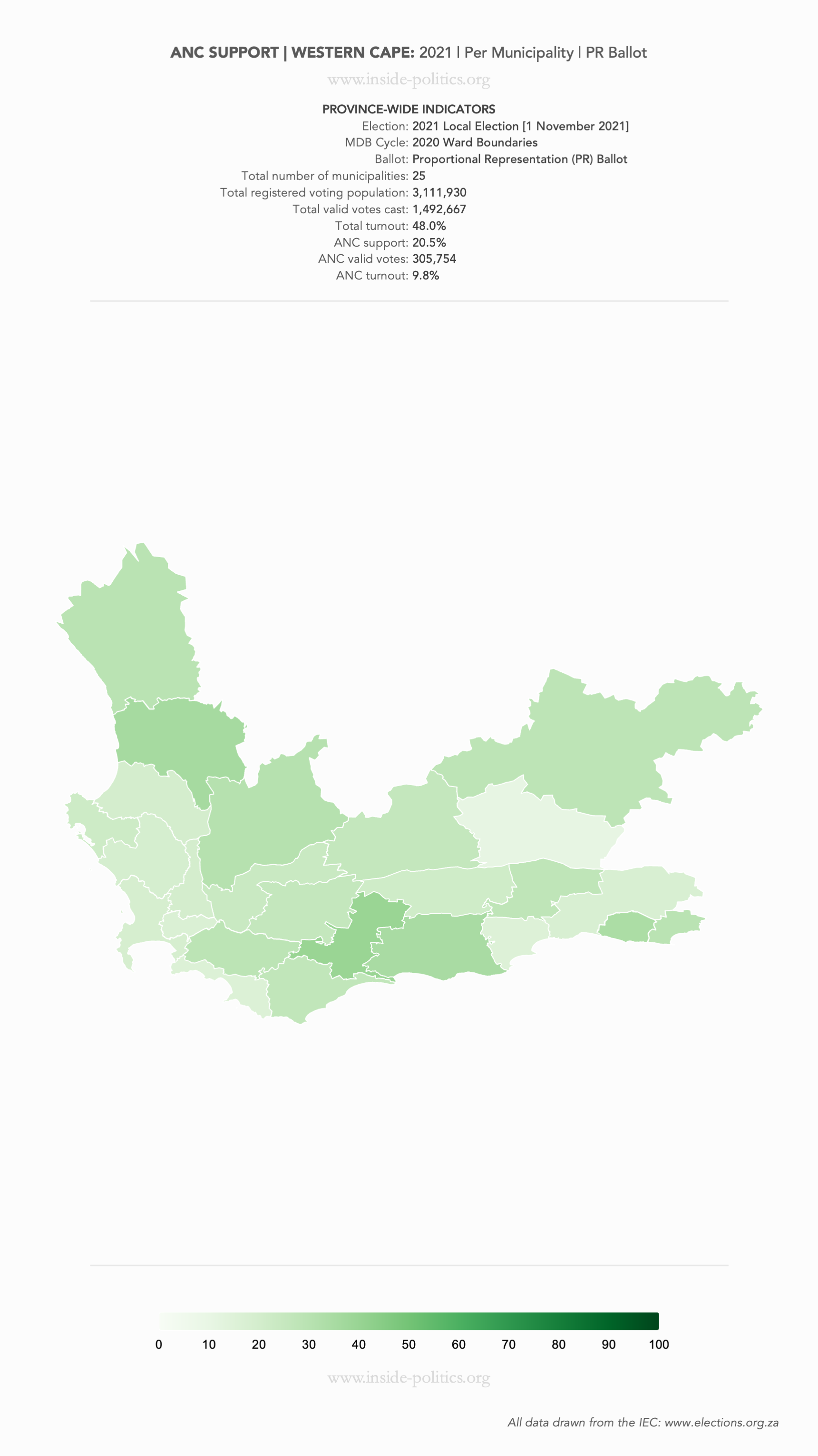 Heat Map: Western Cape | 2021 | ANC Support by Municipality