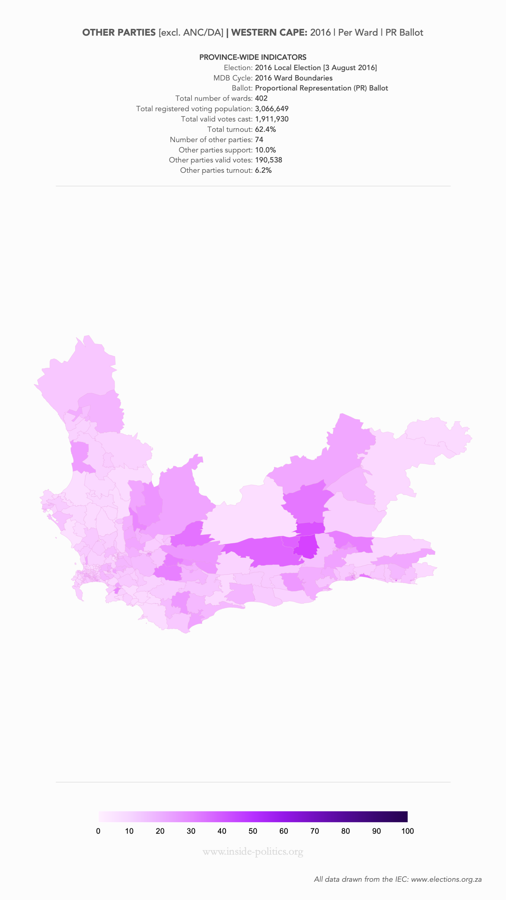 Heat Map: Western Cape | 2016 | Other Parties Support by Ward