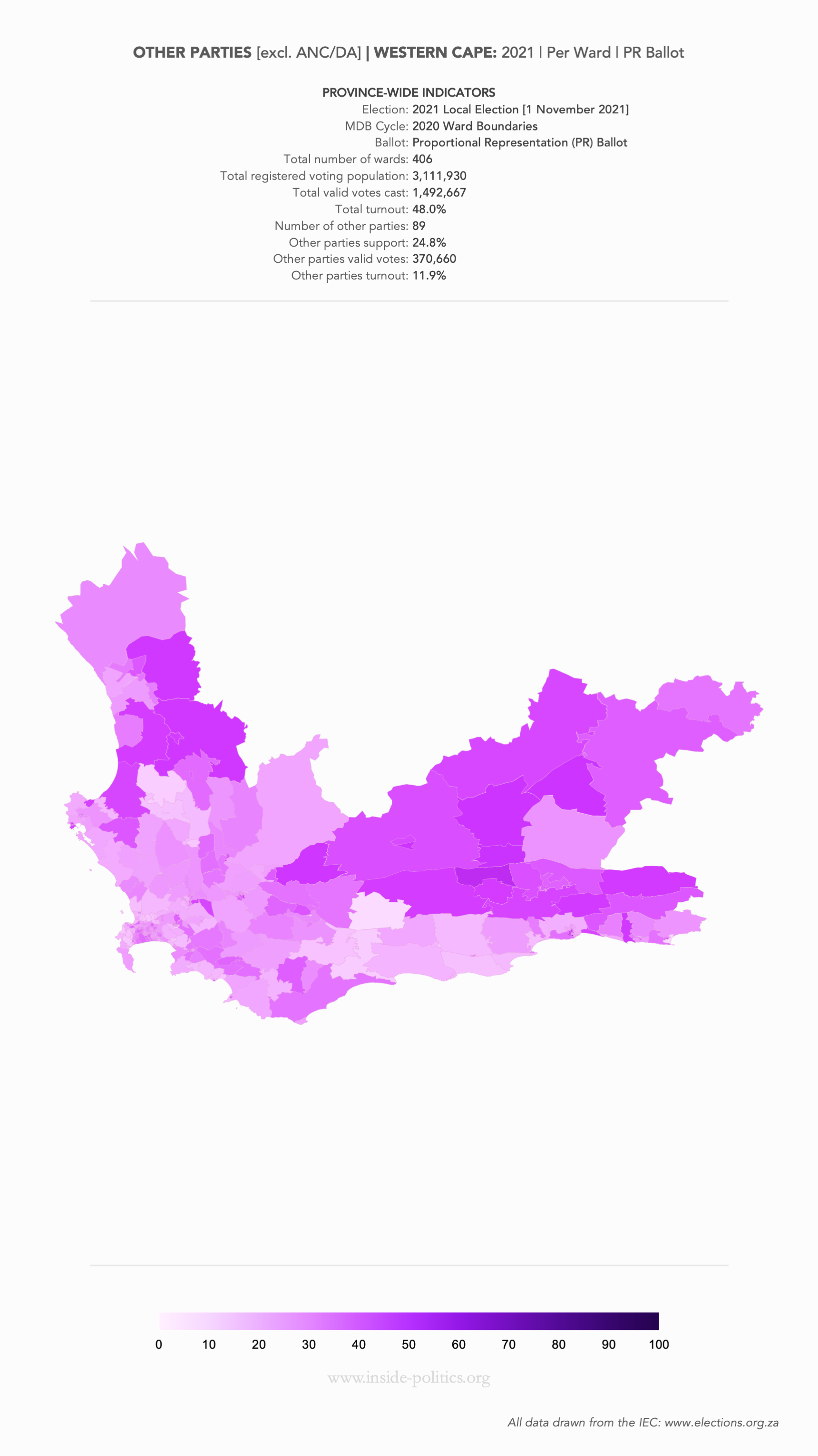 Heat Map: Western Cape | 2021 | Other Parties Support by Ward