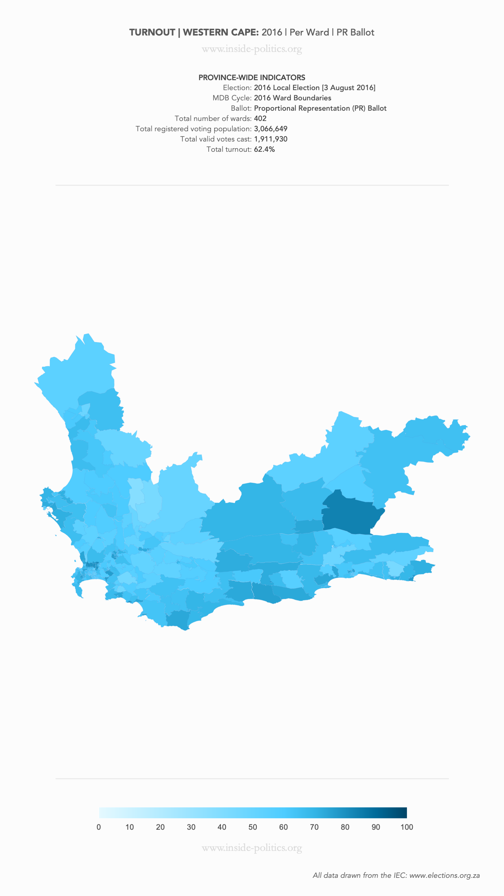 Heat Map: Western Cape | 2016 | Turnout by Ward