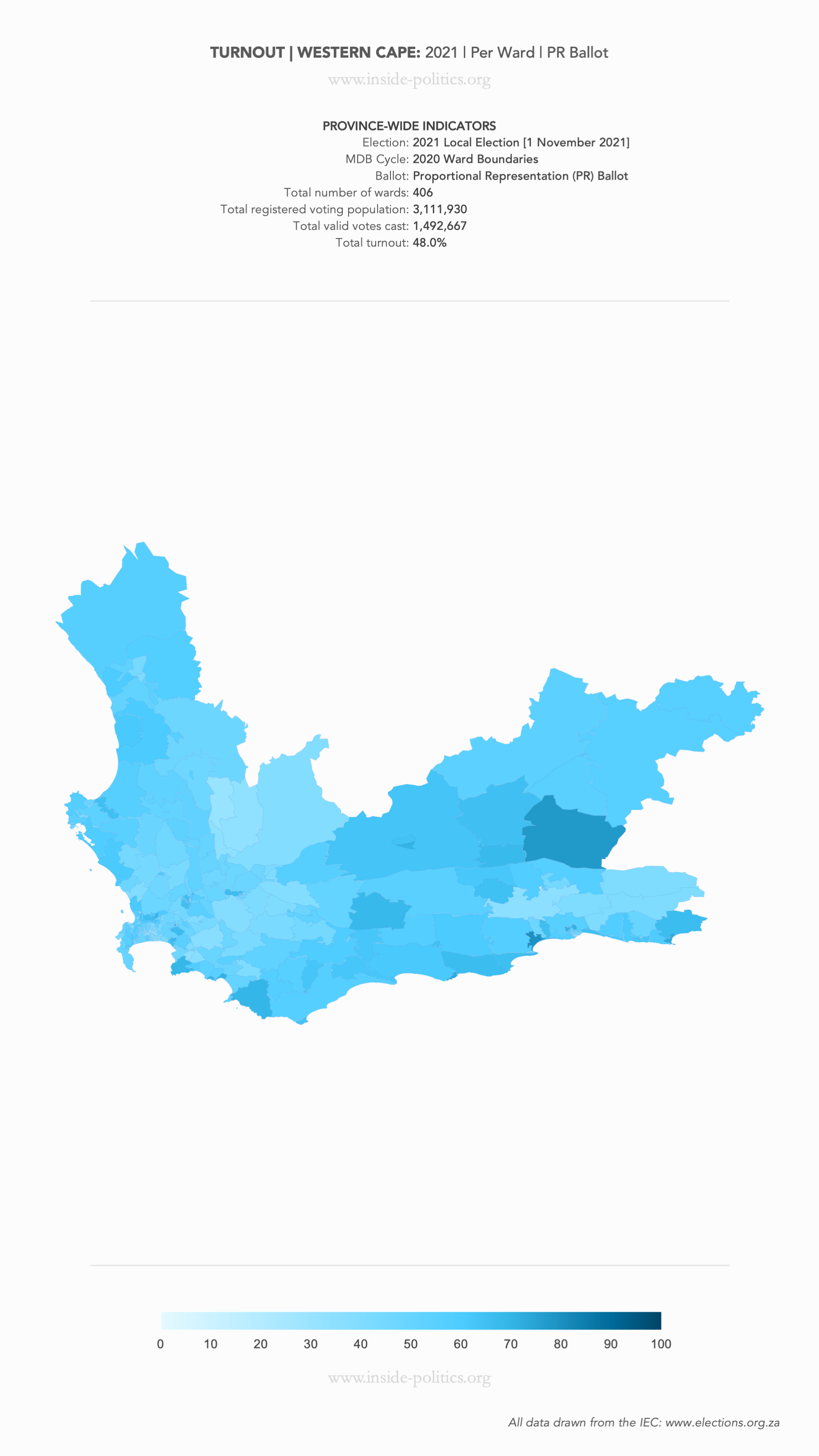 Heat Map: Western Cape | 2021 | Turnout by Ward