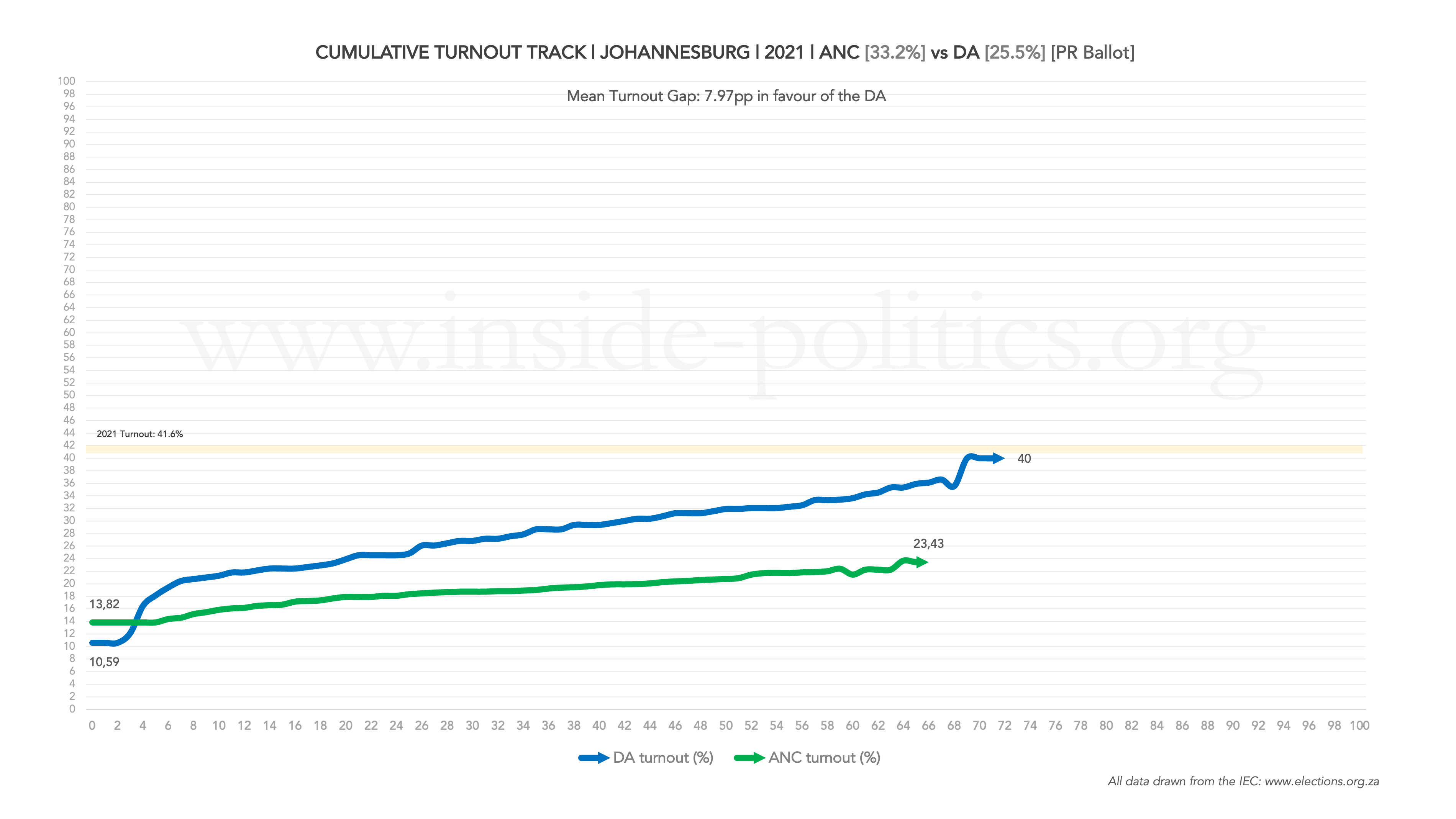 The DA failed to breach the average turnout line in 2021, a sign of depressed turnout across the board.