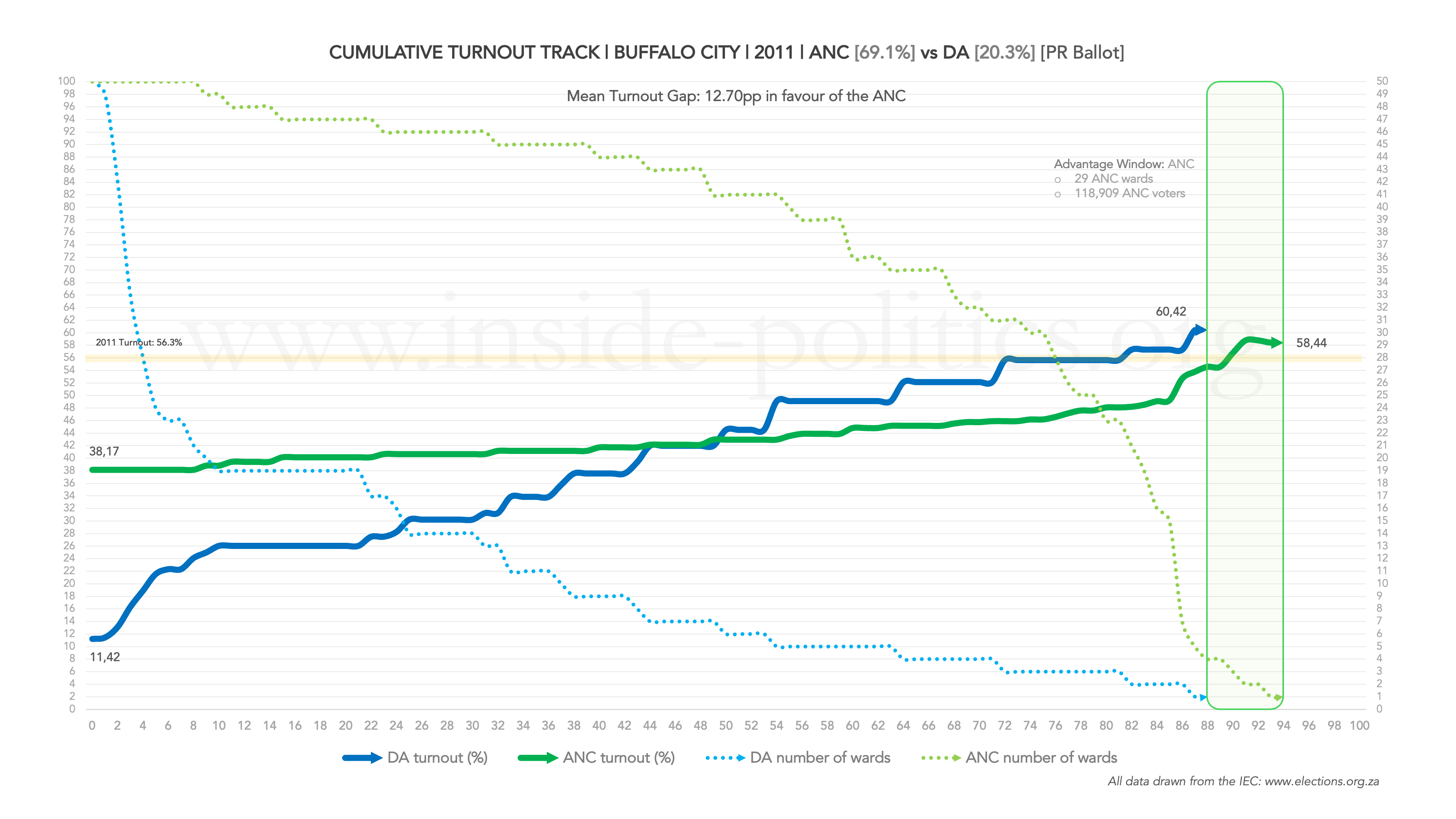 ANC-DA Turnout Track: BCM | All Wards | 2011