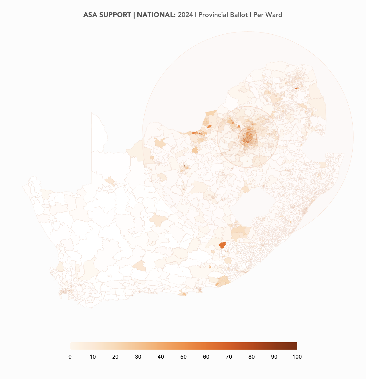 We have a limited data set for ASA: one local and one national election. This makes any analysis tricky, because we cannot definitively identify the trends that define its historical performances in each kind of election, and we are forced to be slightly more anecdotal than we would be with the ANC or DA. But we do know the following, as of 2024: